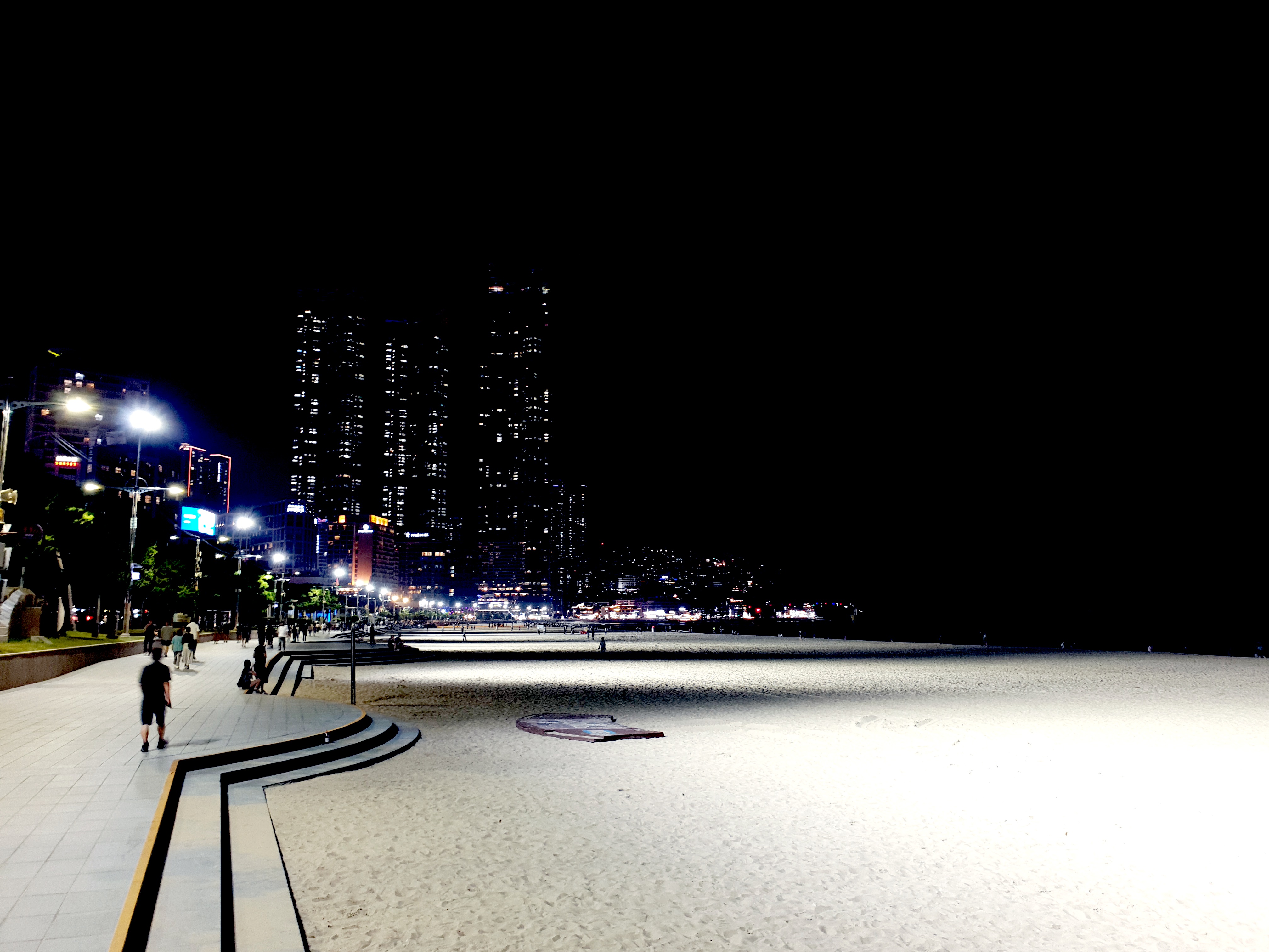 숙소에서 쉬다가 저녁을 위해 해운대시장을 다시 찾아 식사 후, 해운대 해변의 야경을 보기위해 다시 찾아봤습니다.