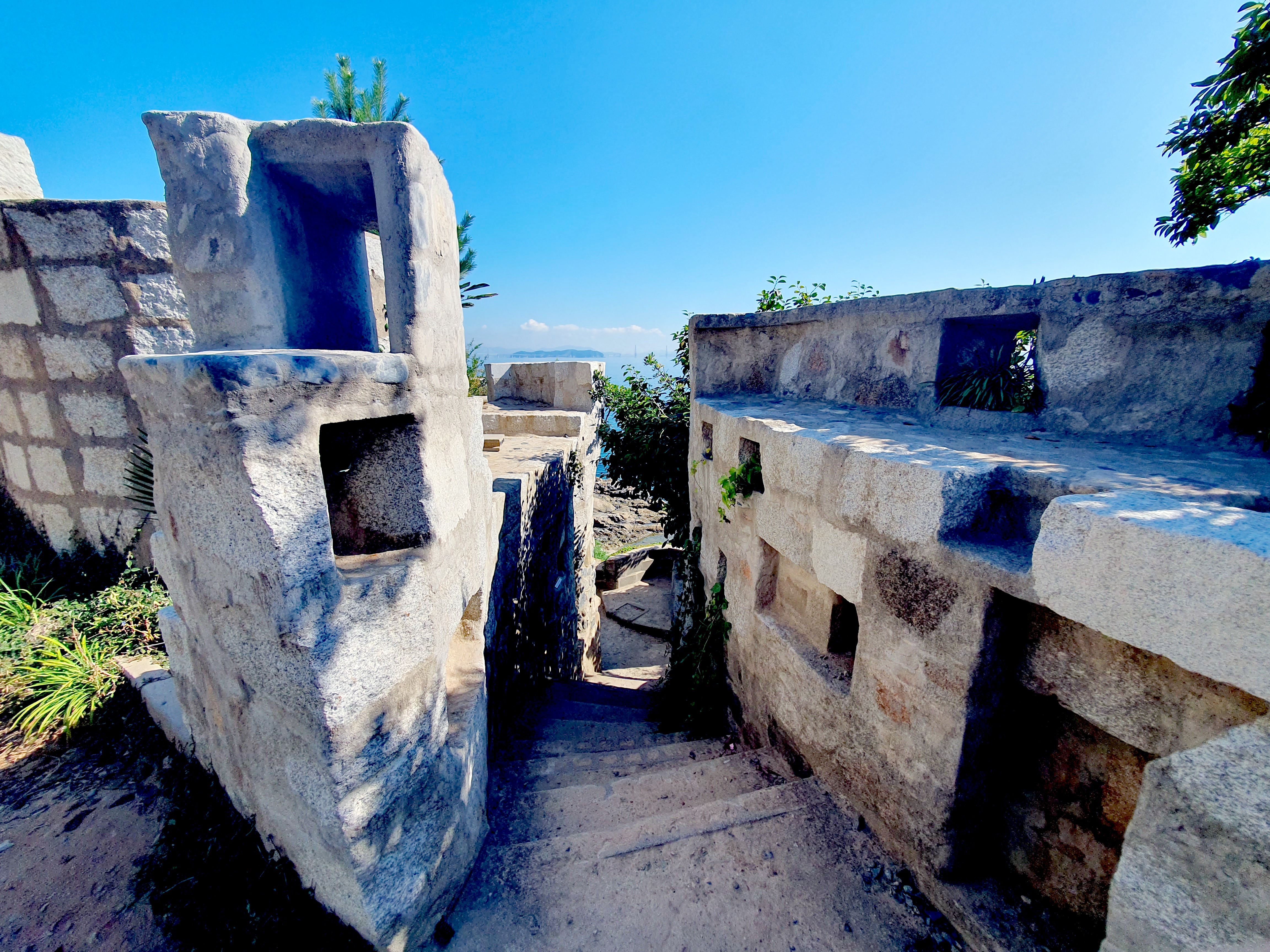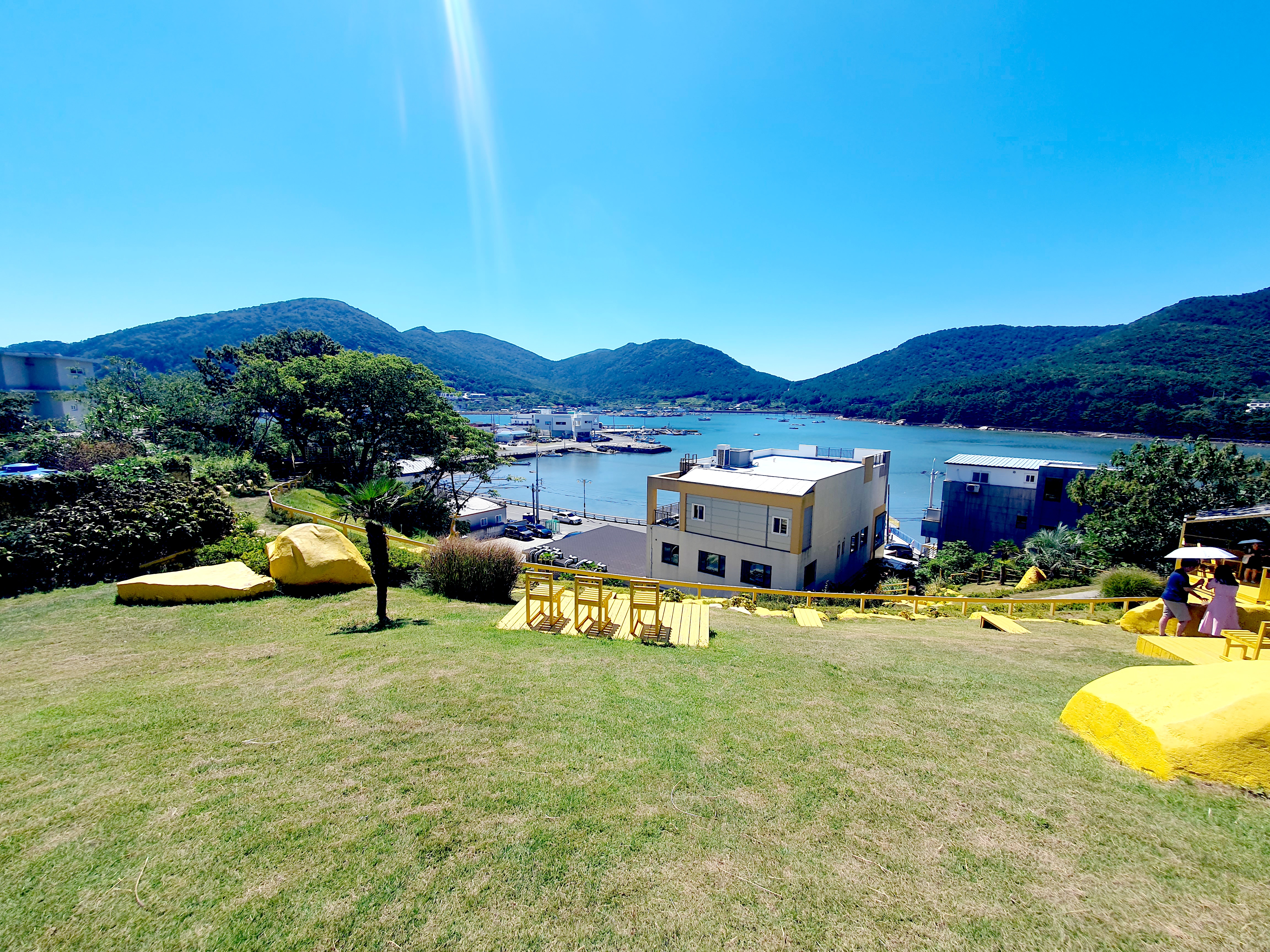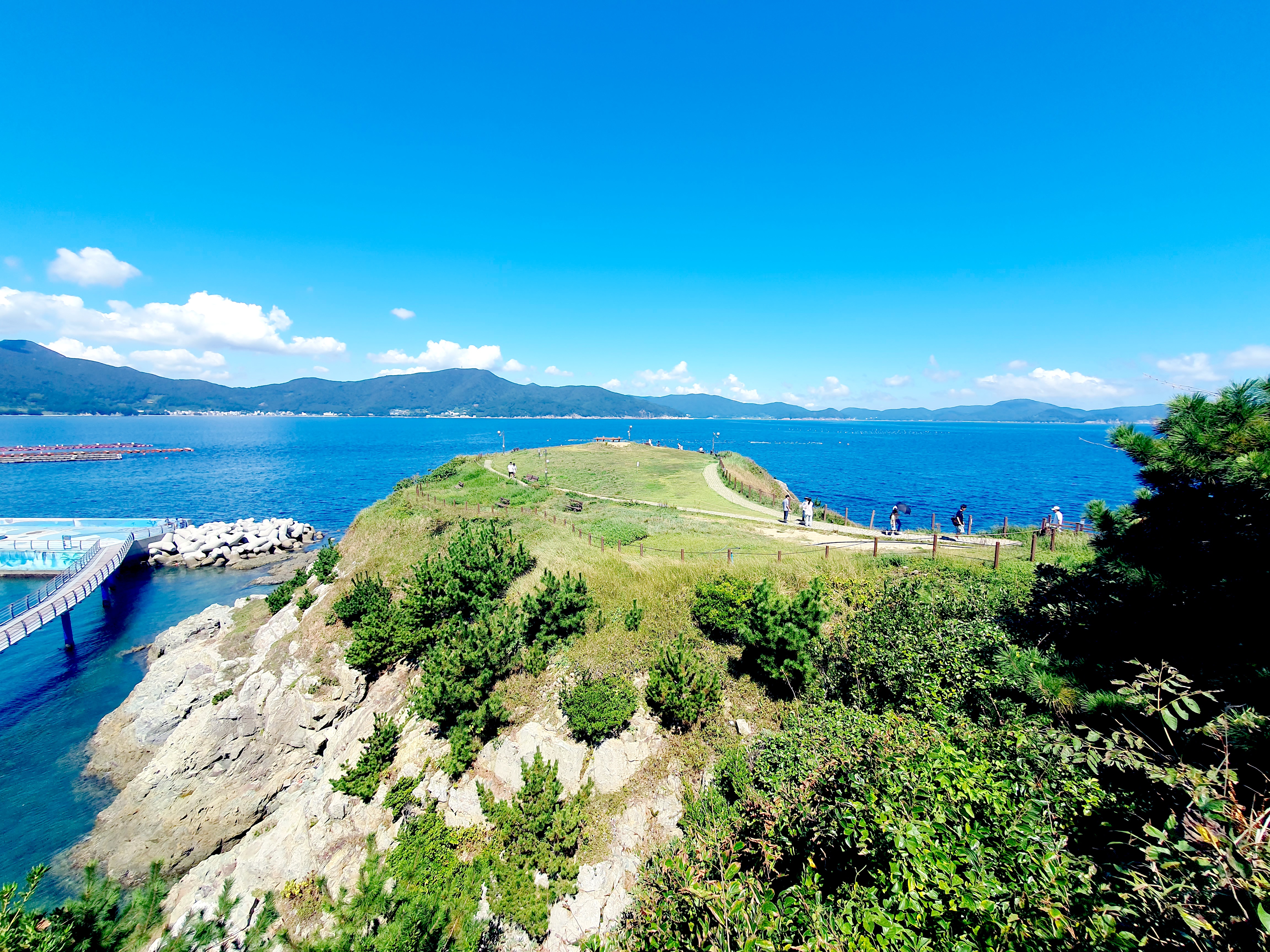 주차 후 항구 끝쪽으로 들어가면 바람의 언덕으로 가는 계단이 있고 올라가면 시원한 바람을 느끼며 아름다운 해금강의 일부를 전망할 수 있습니다.