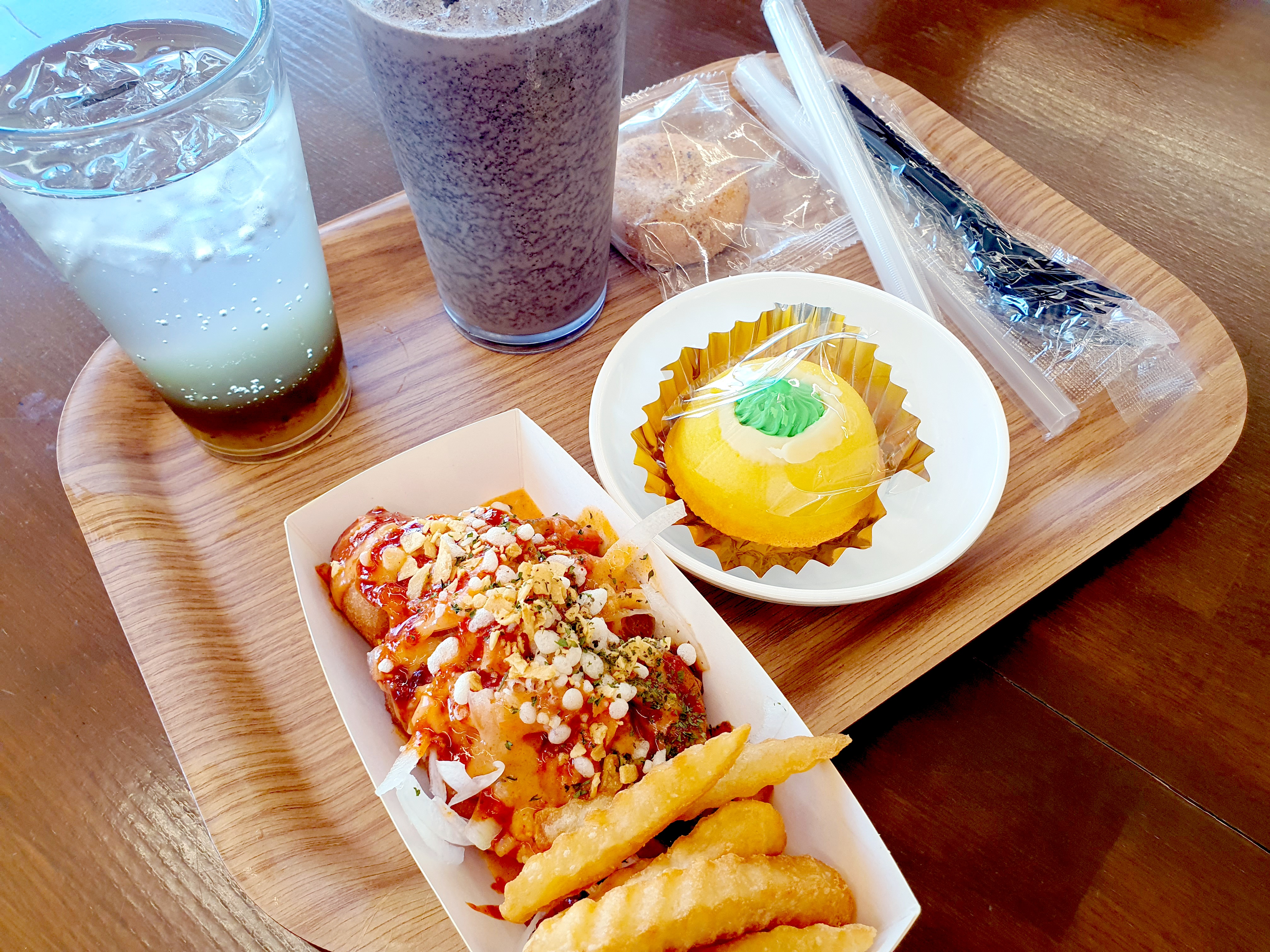핫도그와 케익 및 음료를 먹었는데 핫도그도 맛났지만 케익도 별미더군요.