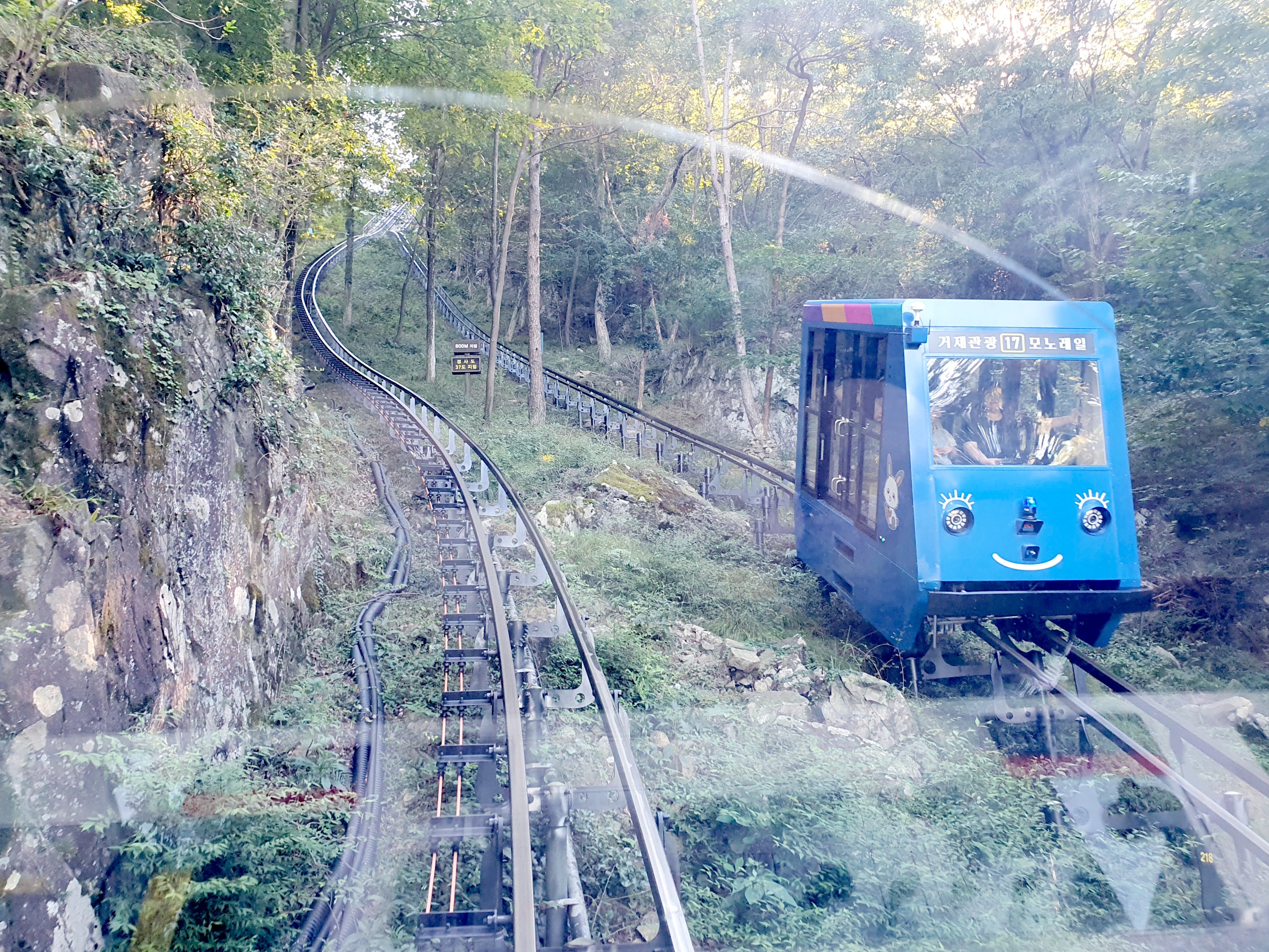 에어컨이 나오지는 않았지만, 산바람 특유의 시원함에 더위를 잠시 있었네요. 다양한 경사도의 모노레일을 타고 오르고 내려가는데 제일 큰 경가가 37도 정도로 급경사라 안전벨트는 필수입니다.