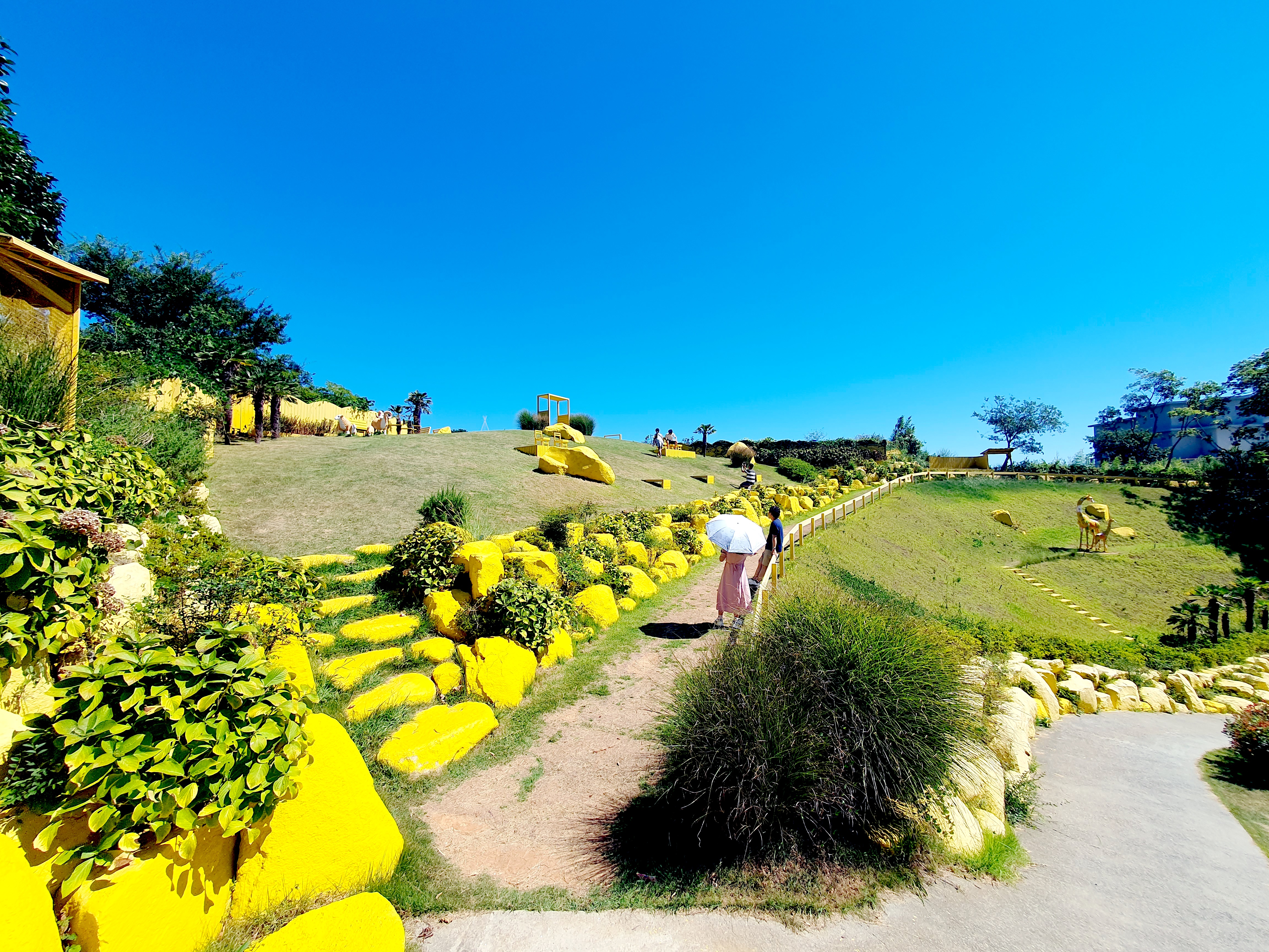 카페 뒤편에는 언덕이 있는데 노런색이 무척이나 눈에 띄는 언덕입니다. 아무래도 바람의언덕을 고려해서 만든 공간인 듯한데 좀 인위적인 느낌은 어쩔 수 없는 듯합니다.