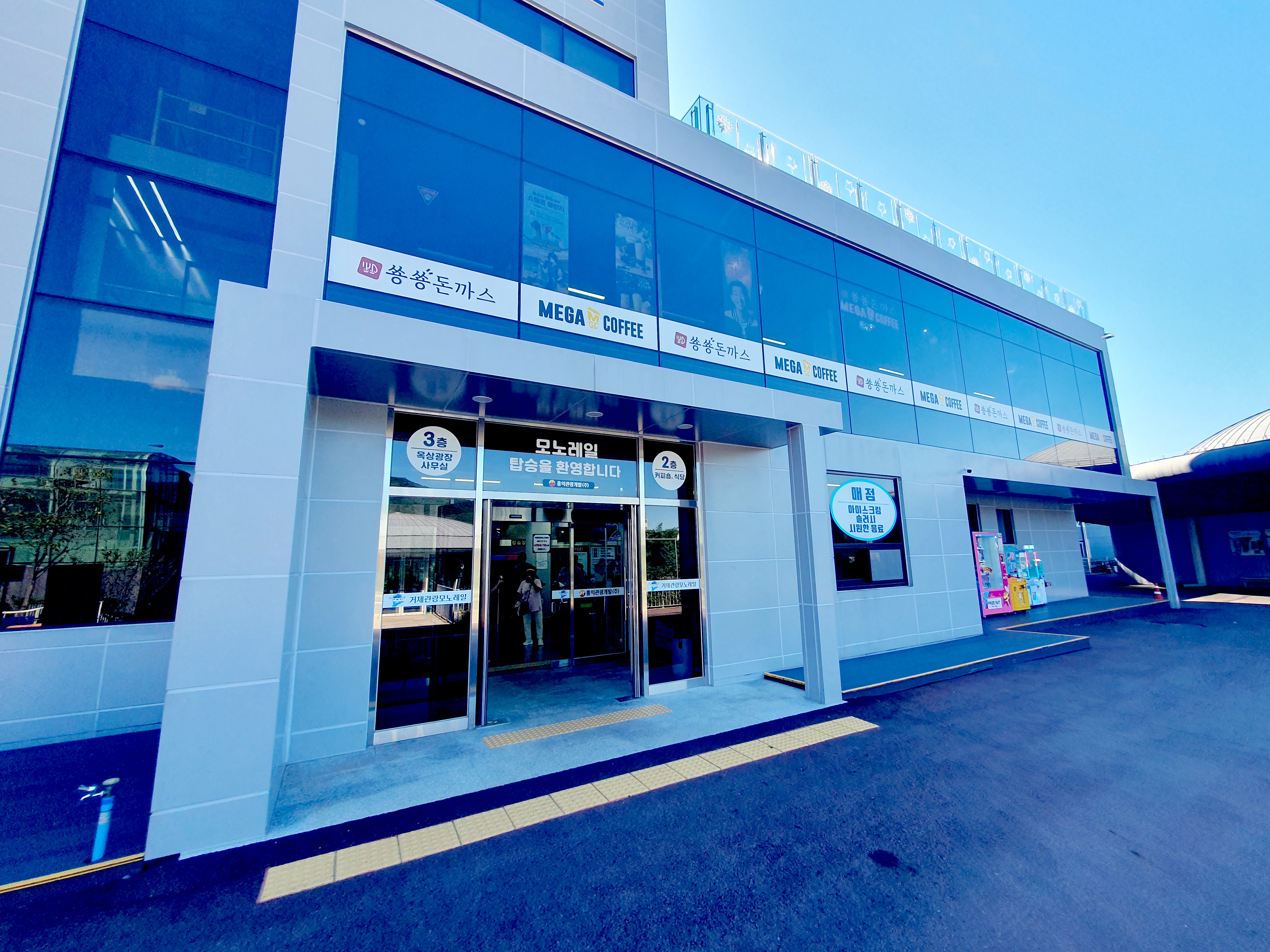 인단 18,000원 표를 구매하고 거제도 포로수용소 구간을 지나면 모노레일을 타는 건물이 나옵니다.