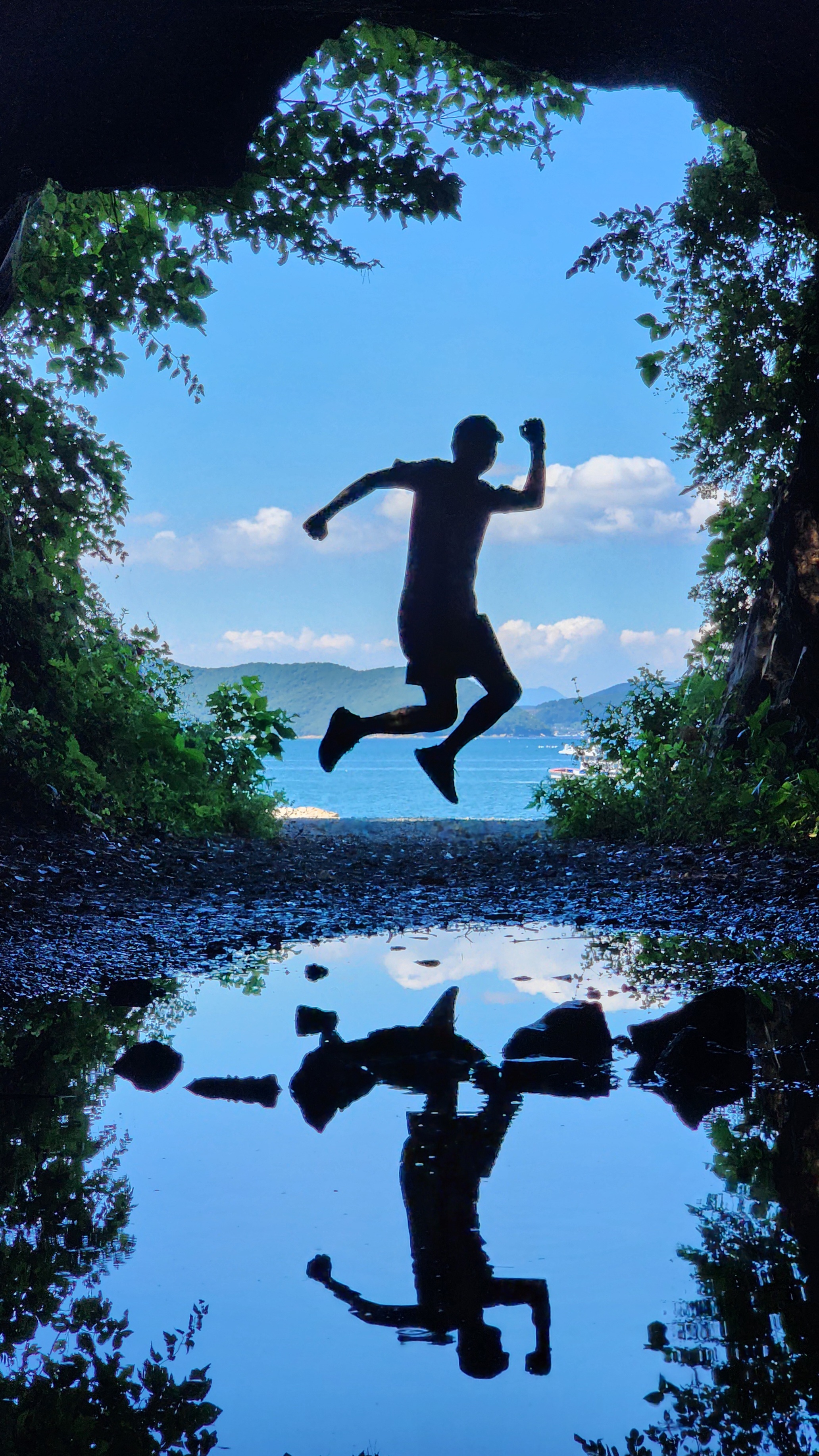 땅굴에서 바다 쪽으로 사진을 찍으면 인생샷을 얻을 수 있어요. 줄 서 있는 분들을 위해서 3분 정도 시간 동안 열심히 찍으면 됩니다. 처음 2개 동굴은 연결되어 있고, 다른 하나는 바로 옆에 떨어져 있어요.