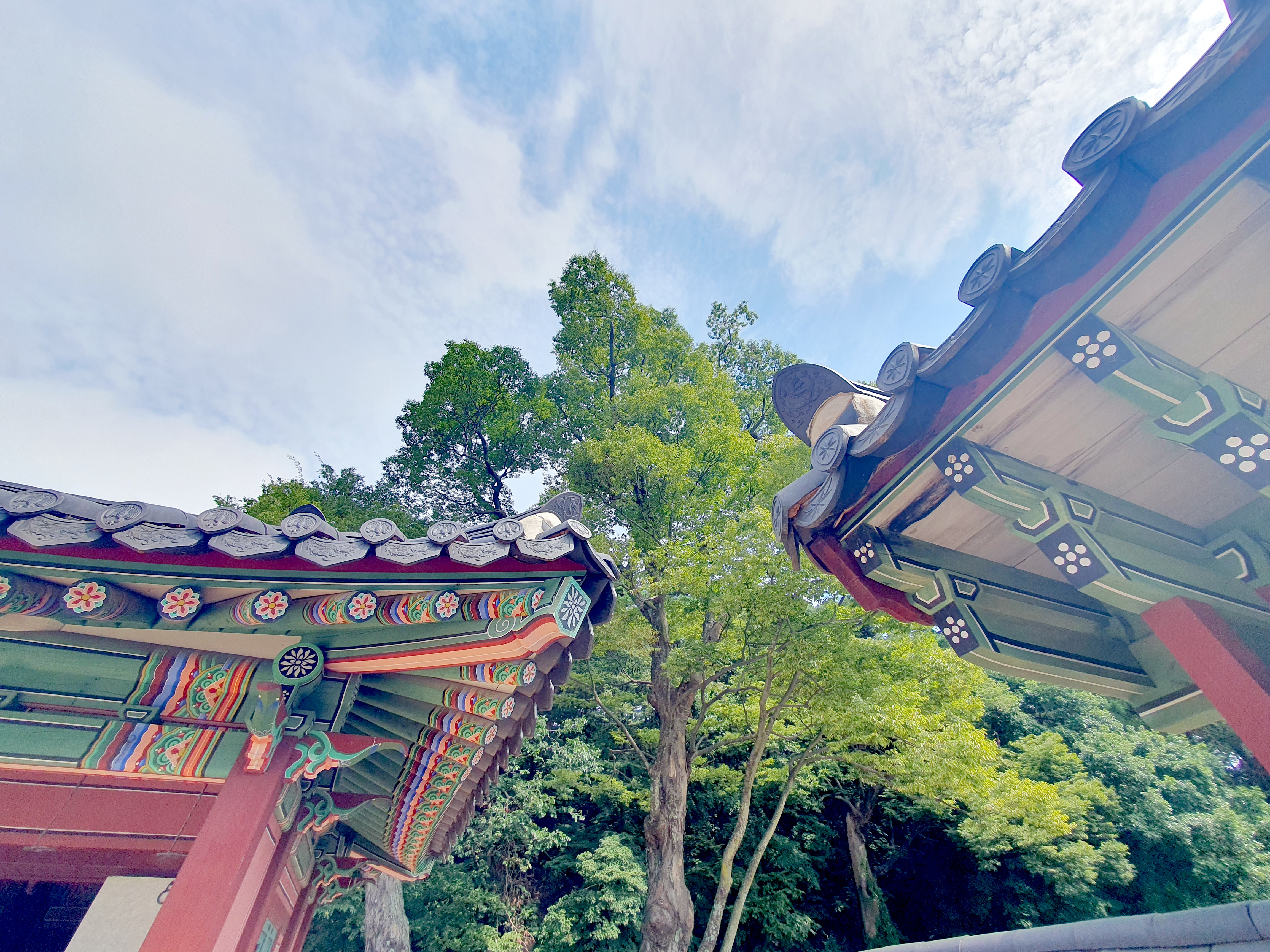 단청 색상의 아름다움과 자연의 색상이 멋들어지게 잘 어울리는 우리나라의 건축물입니다.
