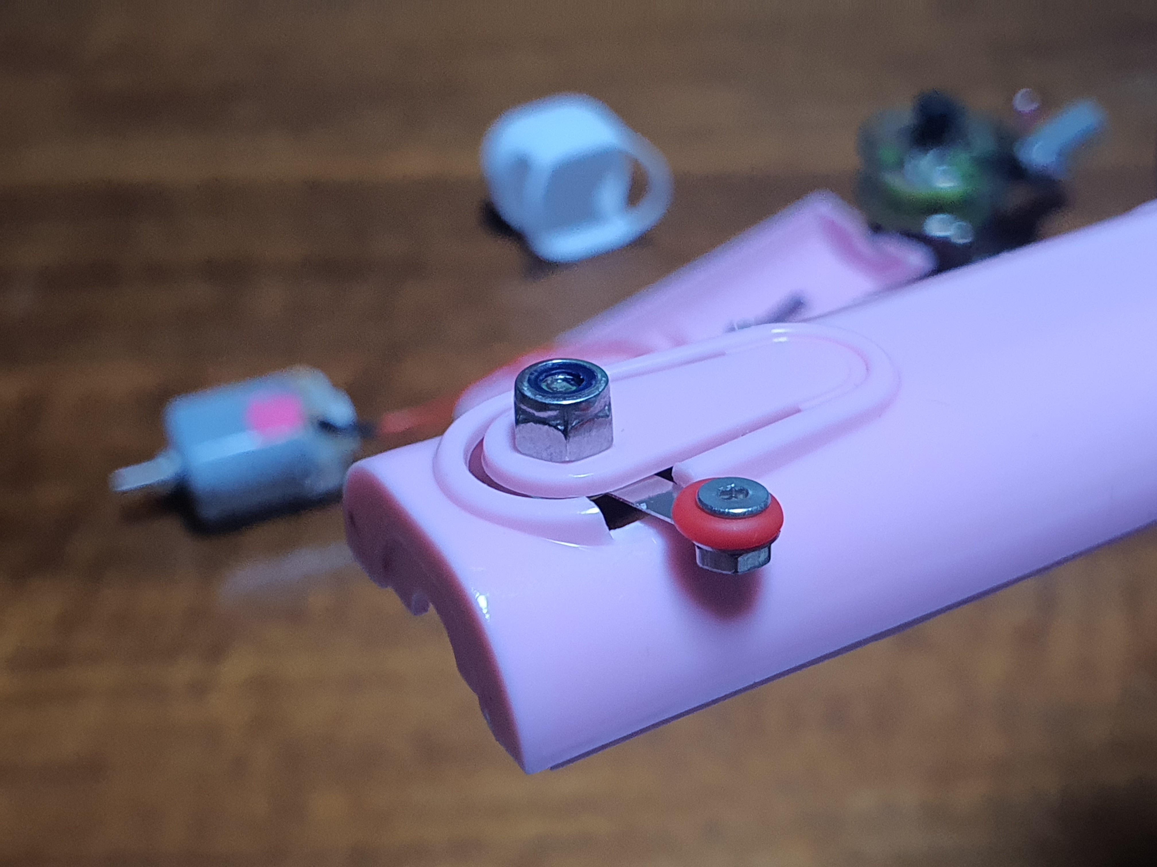 모터에 붙은 분홍색 스티커는 작동 버튼쪽에 있는 레버를 이용하기 위해 필수이더군요.