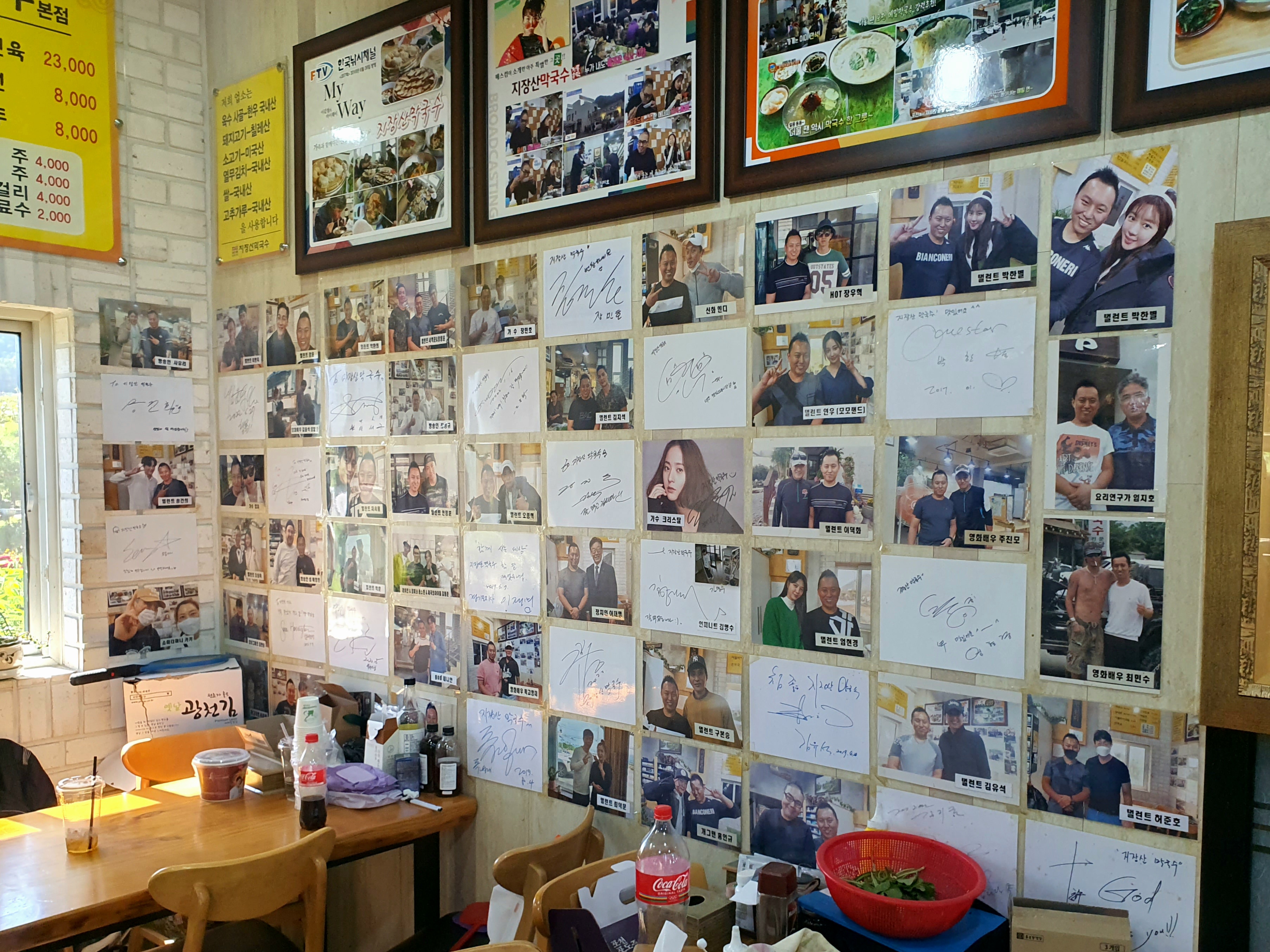 식당으로 들어서니 벽면에 유명인들의 방문 사진과 사인을 보니 꽤 알려진 맛집이구나 생각이 들더군요.