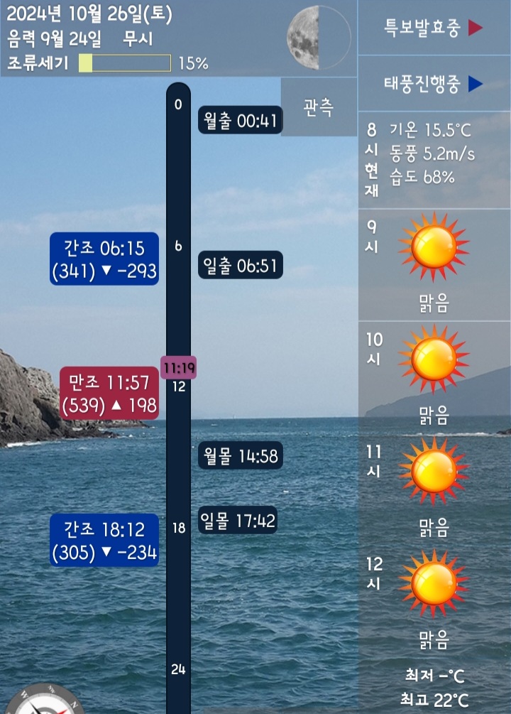 □ 바다상황 : 바람 0~2단 / 파도 없음