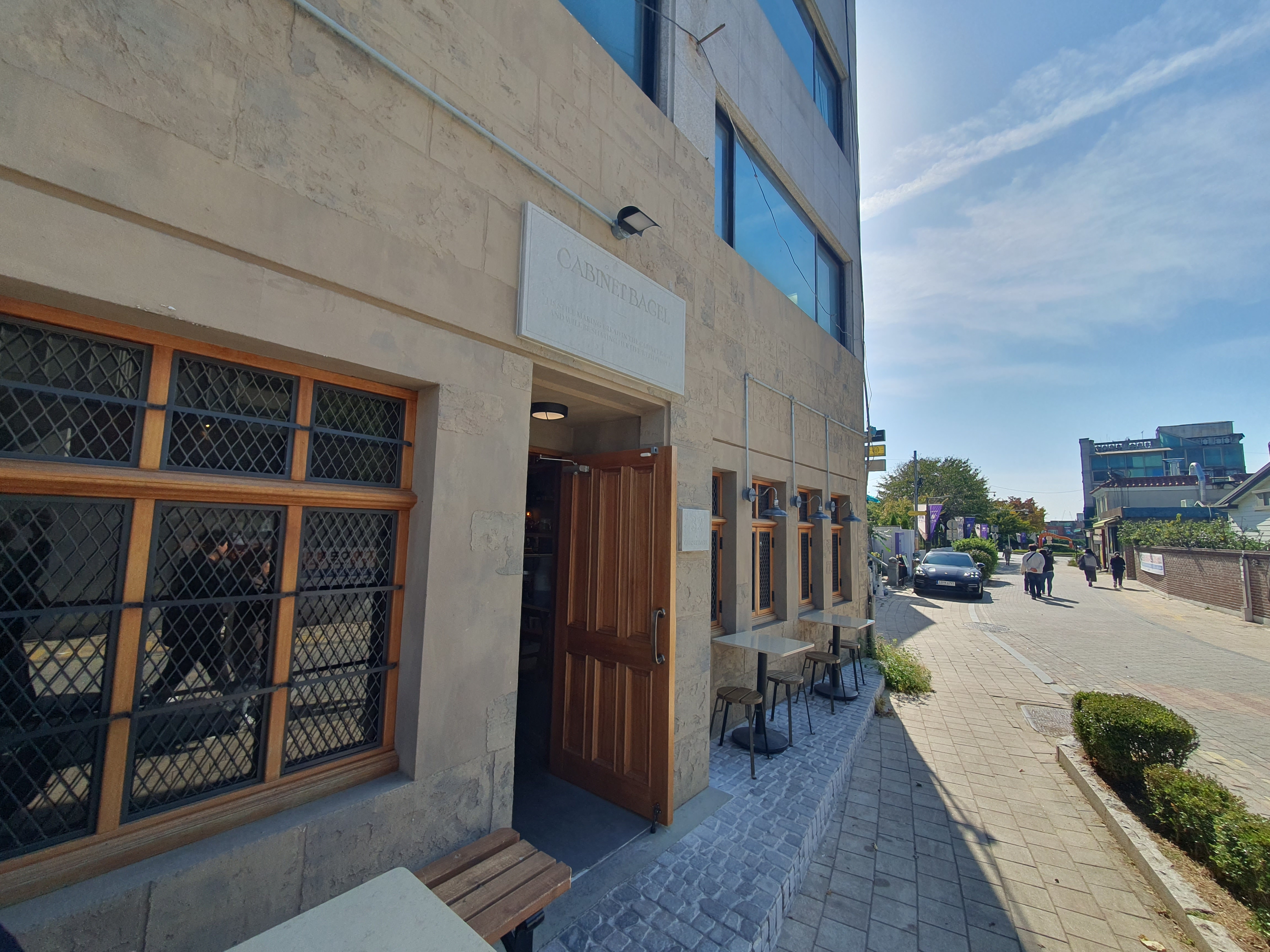장안문전에 있는 북서적대에서 화성행궁으로 가는 길을 따라가다 보면 화성행궁 근처에서 캐비넷 베이글이라는 카페를 찾을 수 있습니다. 화성행궁 광장에서 행리단길로 가는 길을 따라가면 더 쉽게 찾을 수 있어요.