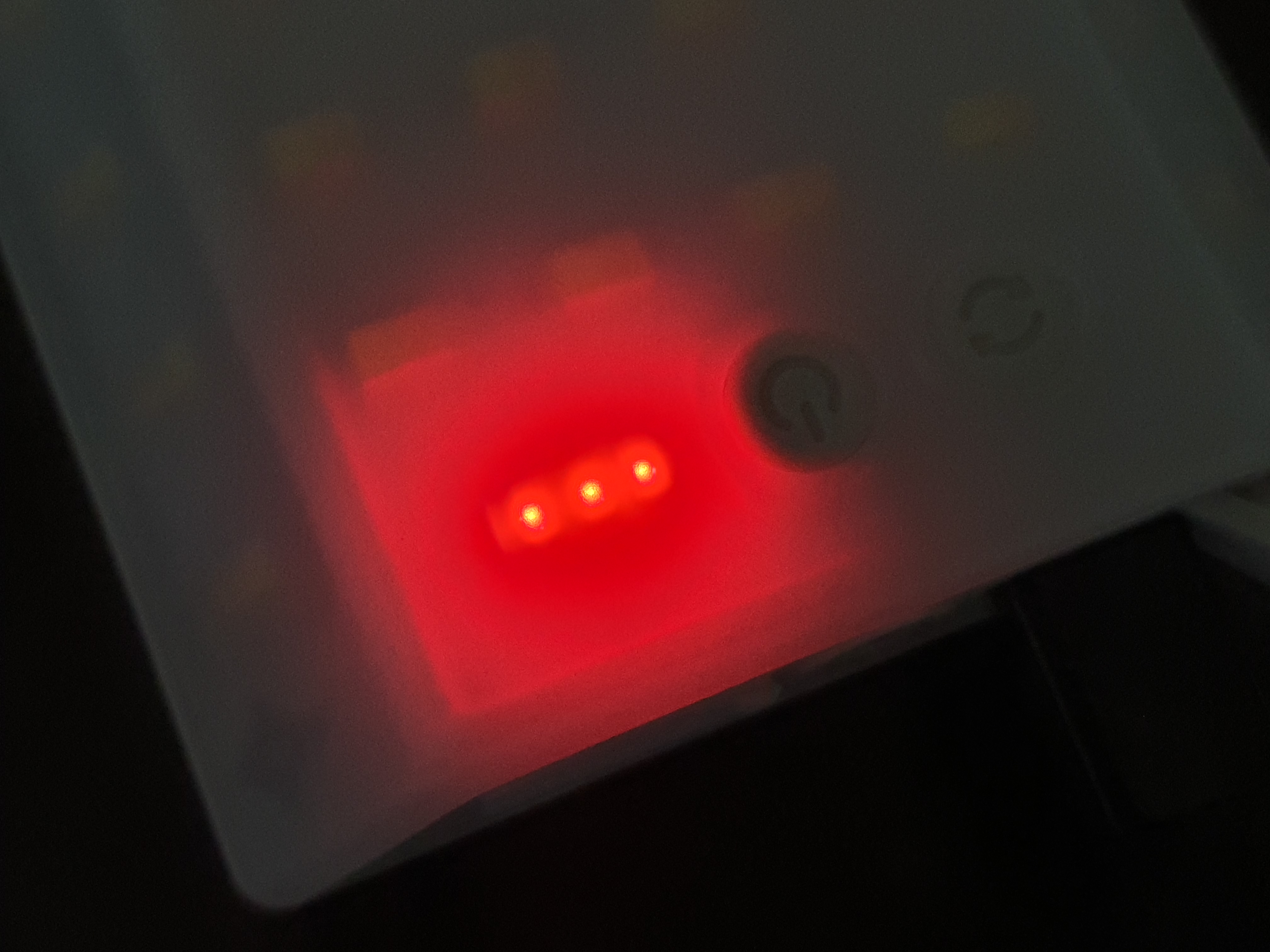 전원을 켜면 배터리 상태를 직관적으로 알 수 있고, 최대밝기가 800루멘이라 상당히 밝습니다.