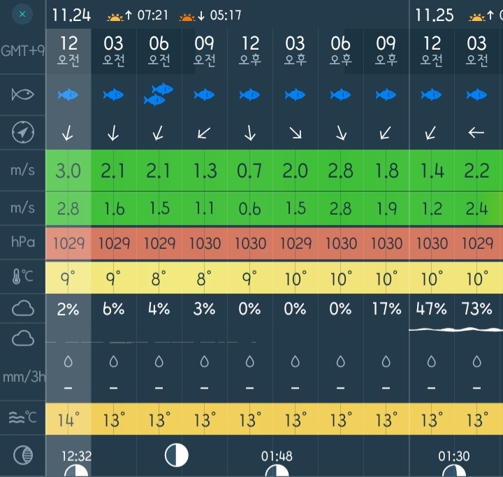 □ 바다상황 : 바람 0~1단, 파도 없음