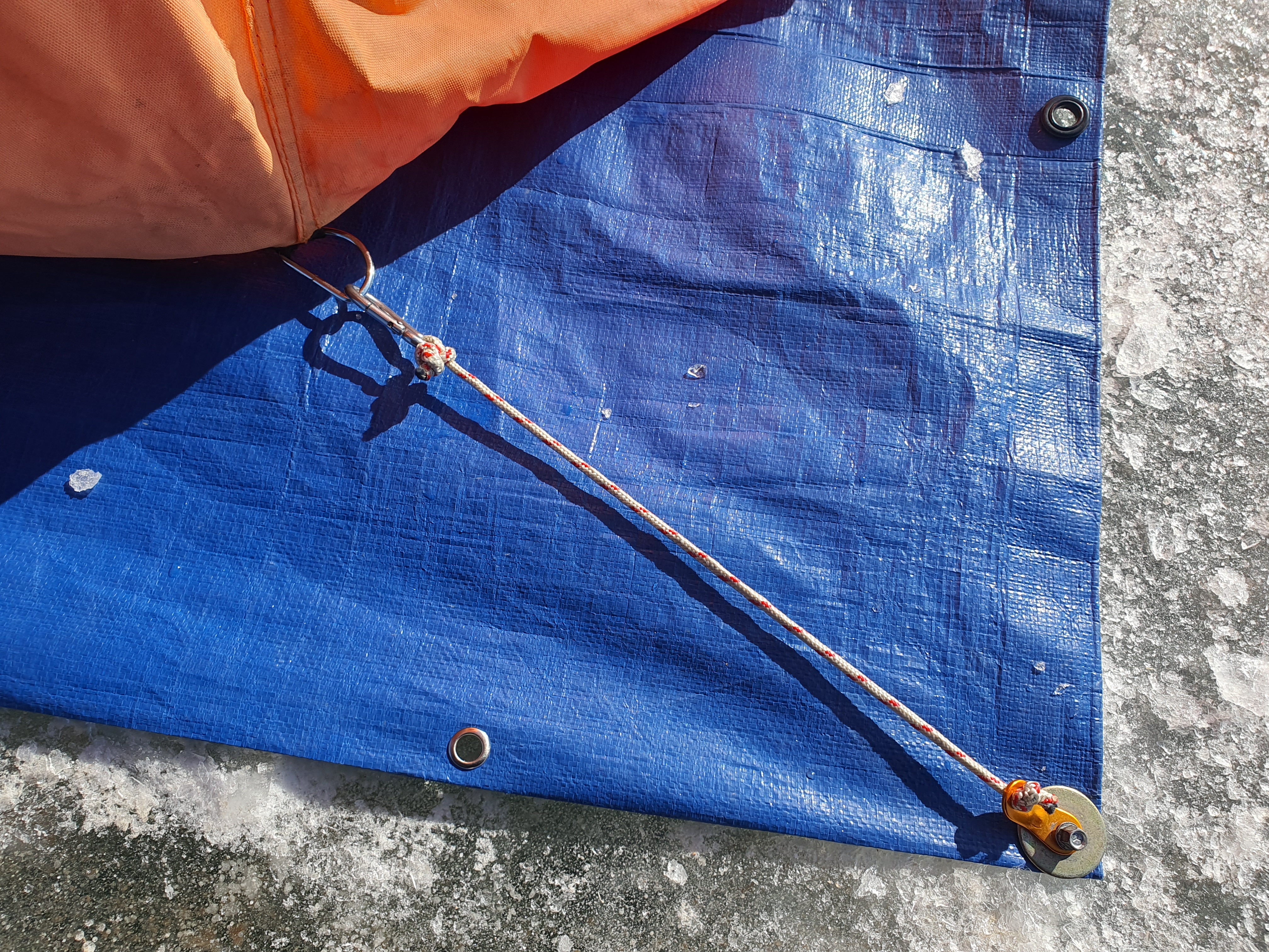 방수포 일부를 고정시키고, 구멍 위치를 잡아도 되는데 구멍위치가 살짝 틀어지니 아이스앵커를 다시 고정해야 하는 불편함이 있더군요.