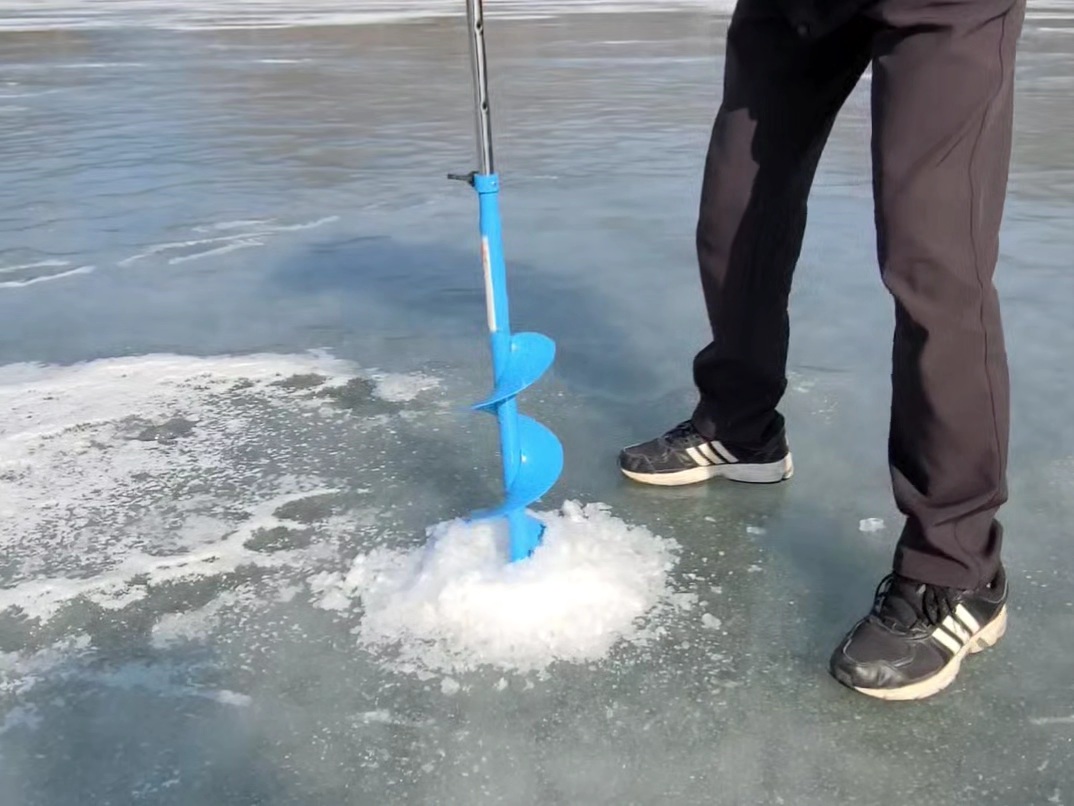 표시된 위치에 아이스오거로 구멍을 냅니다.