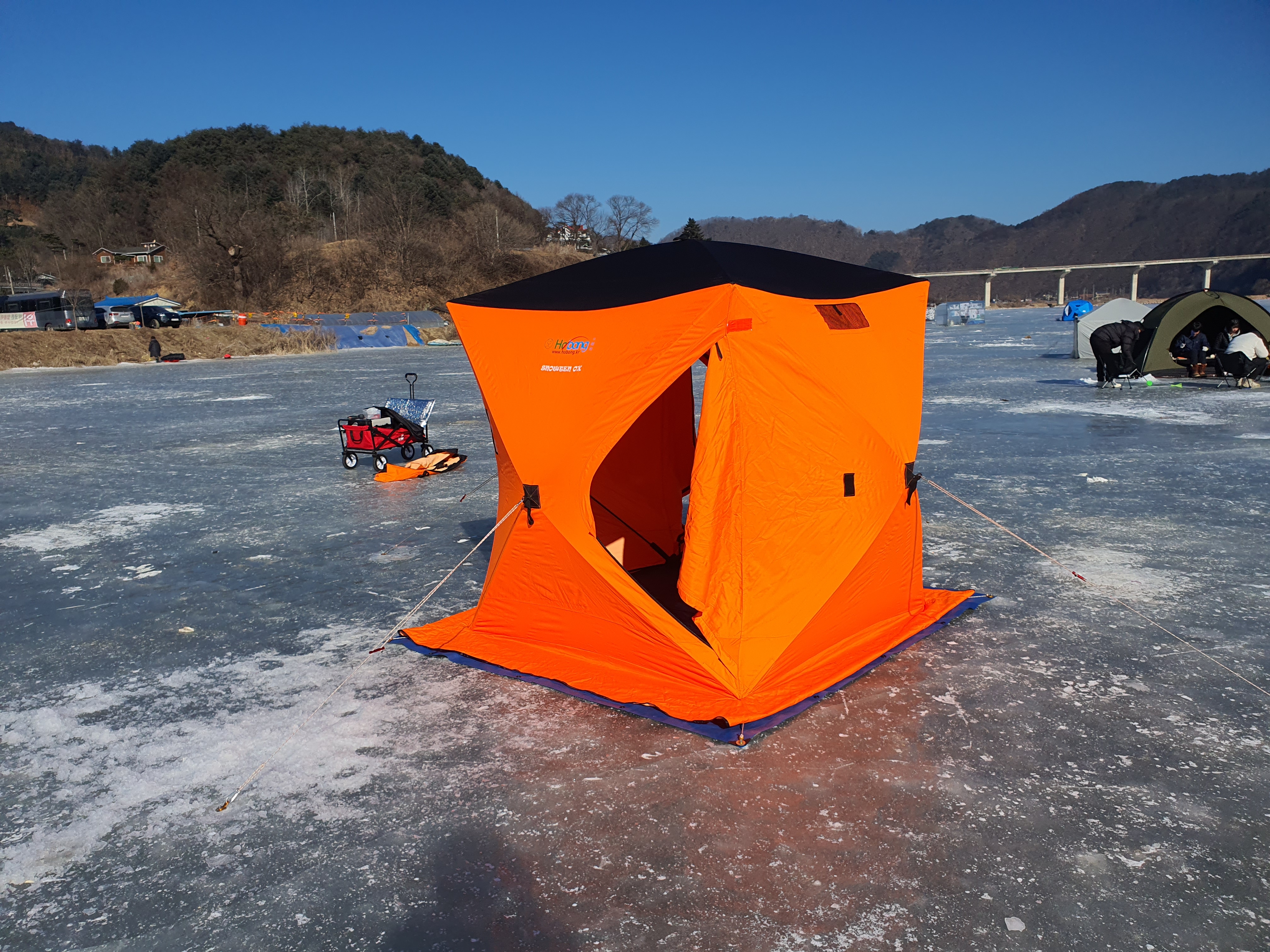 이번 포스팅은 지난 시즌에 했어야 할 빙어낚시를 위해 빙판 위에 큐브텐트를 구축하는 순서를 적어보고자 합니다.