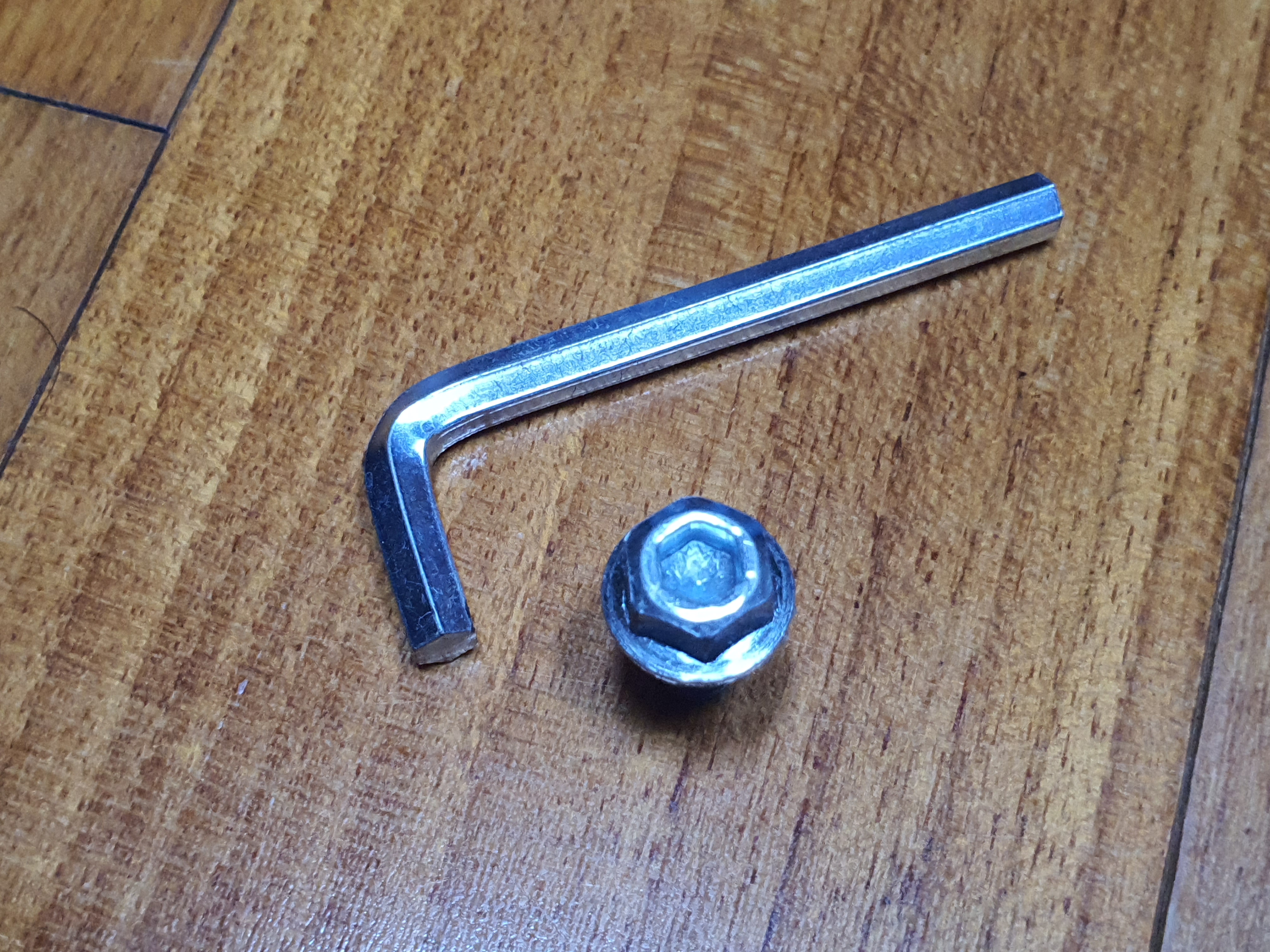 예전에 여행가방 바퀴를 교체할 때 함께 왔던 육각렌치가 딱 맞더군요.