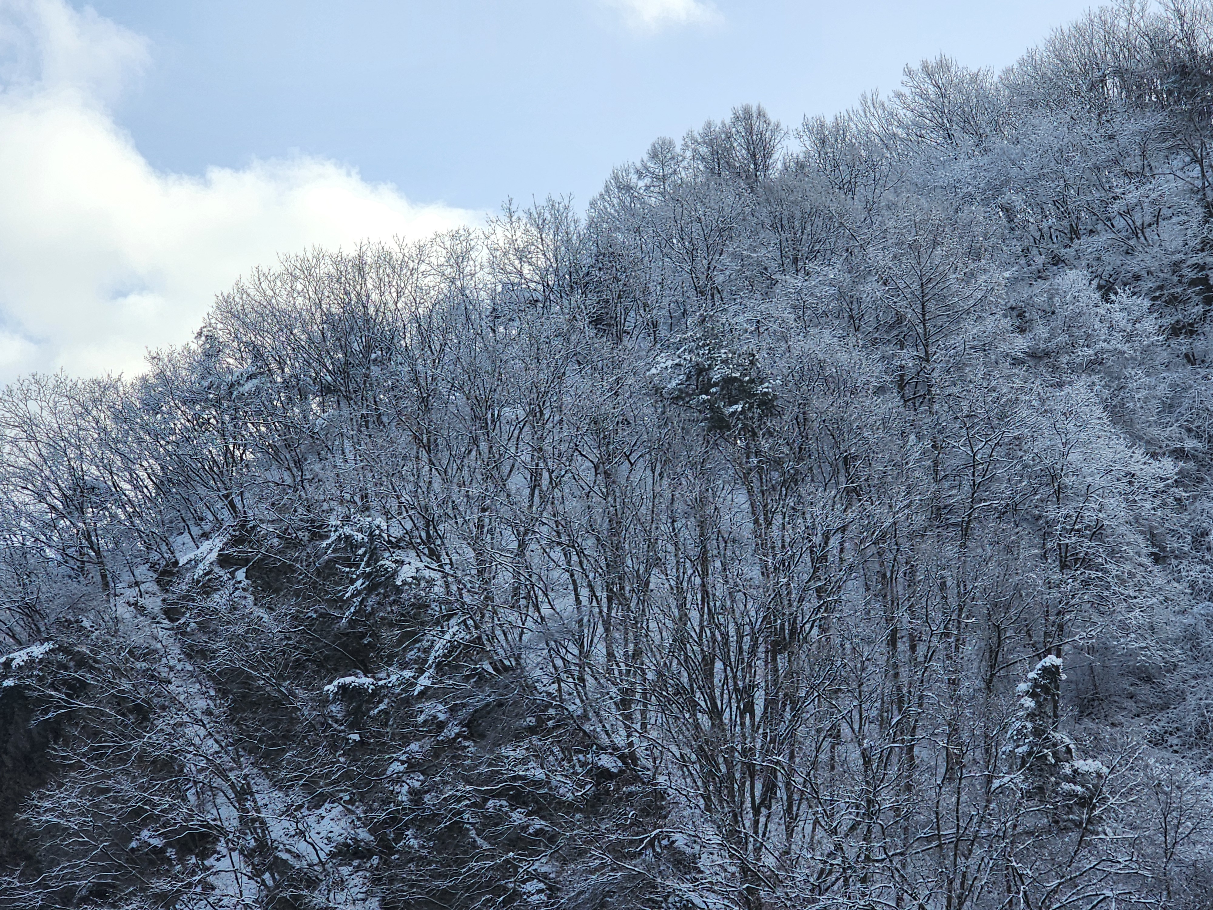 초입은 많이 불안하더군요. 빙판이 몇 번이나 깨져서 밟으면 또 깨질 듯하고, 한쪽에 누군가 발판으로 넘어갈 수 있게 만들어 두어서 넘어갔네요.