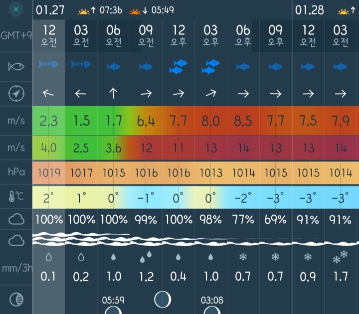 □ 날씨 : 바람 5단이하, 영하권 온도, 눈보라
