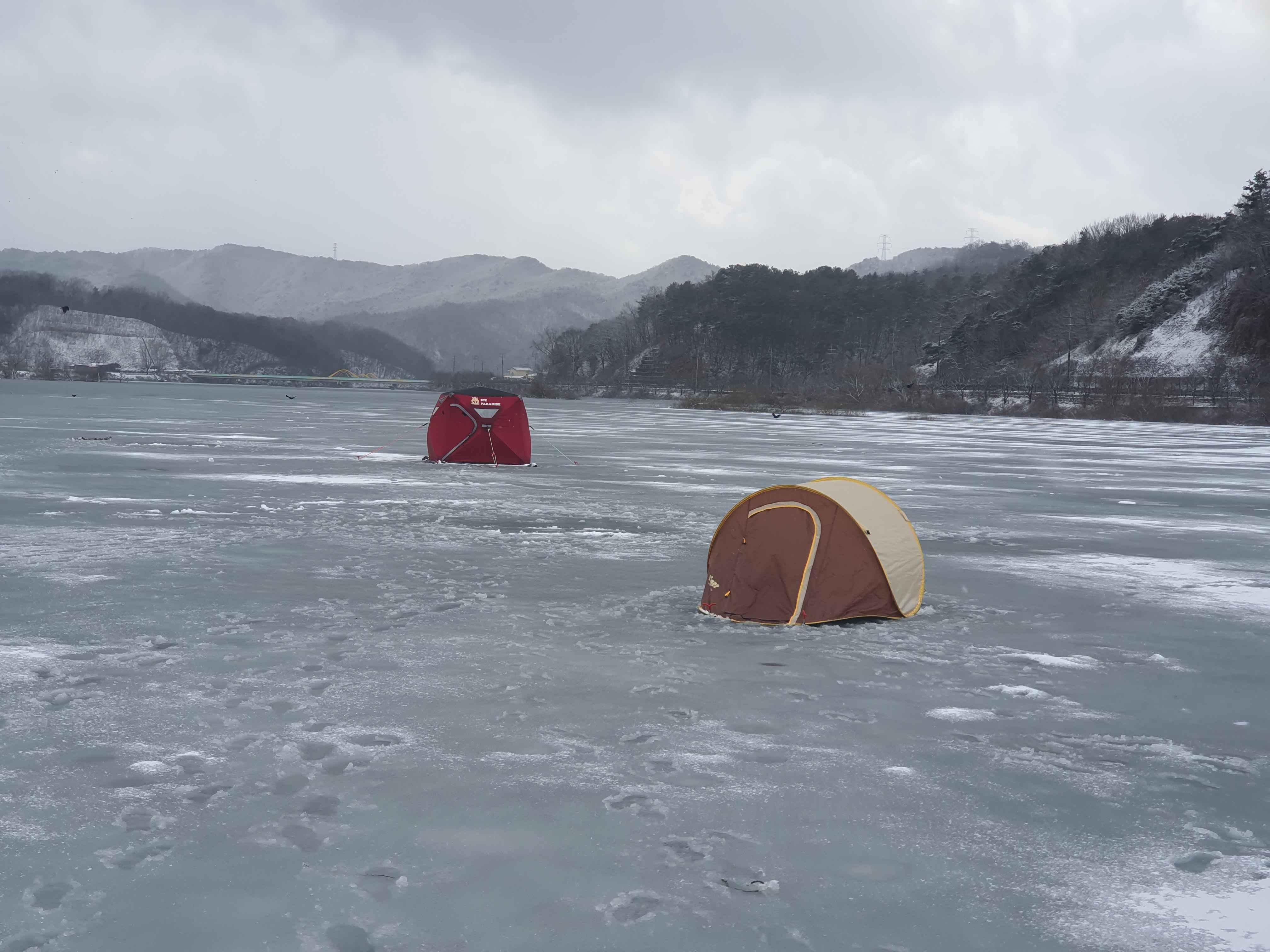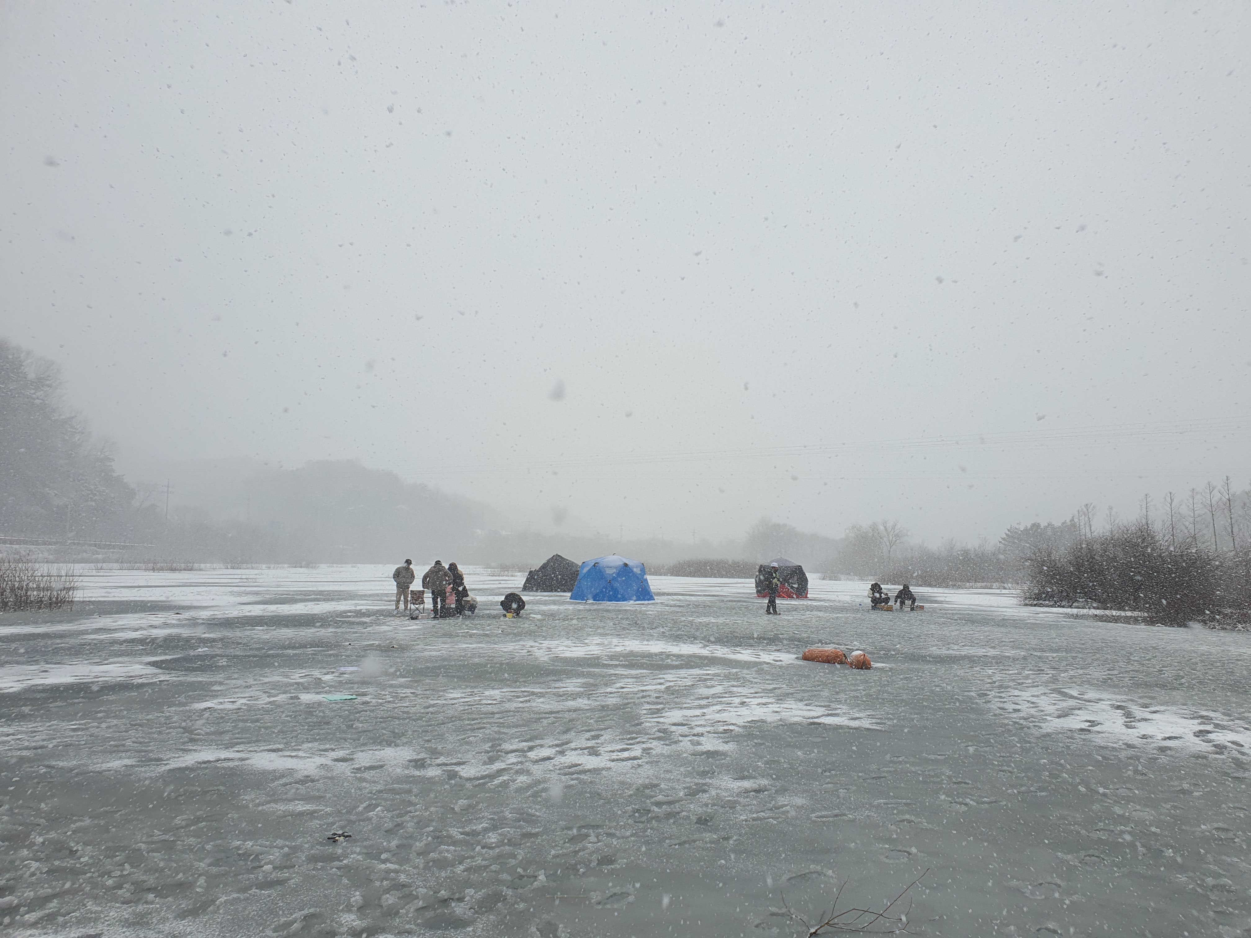 그럼에도 불구하고, 빙어낚시를 해 보겠다는 일념으로 텐트를 피칭해 봅니다.