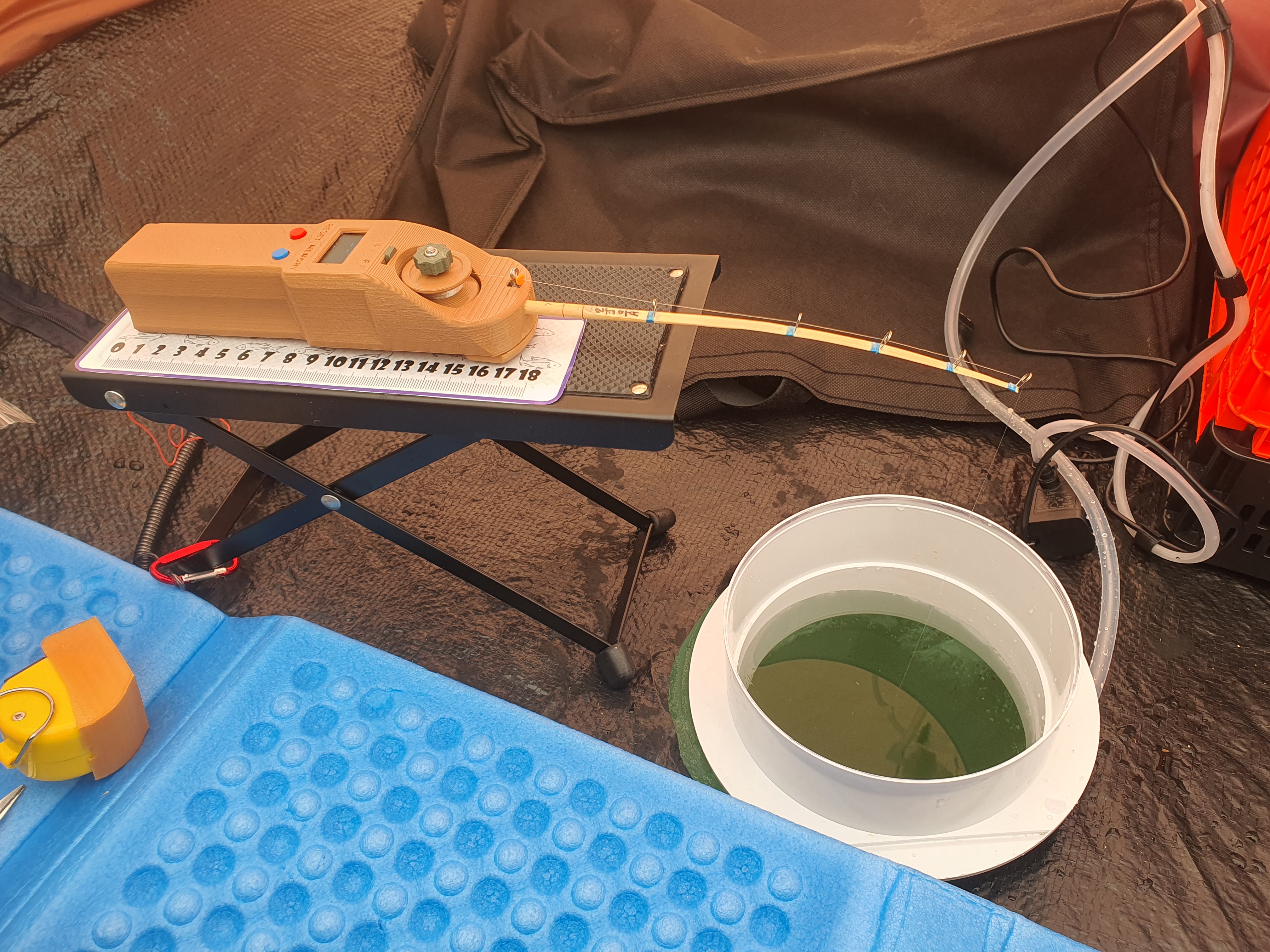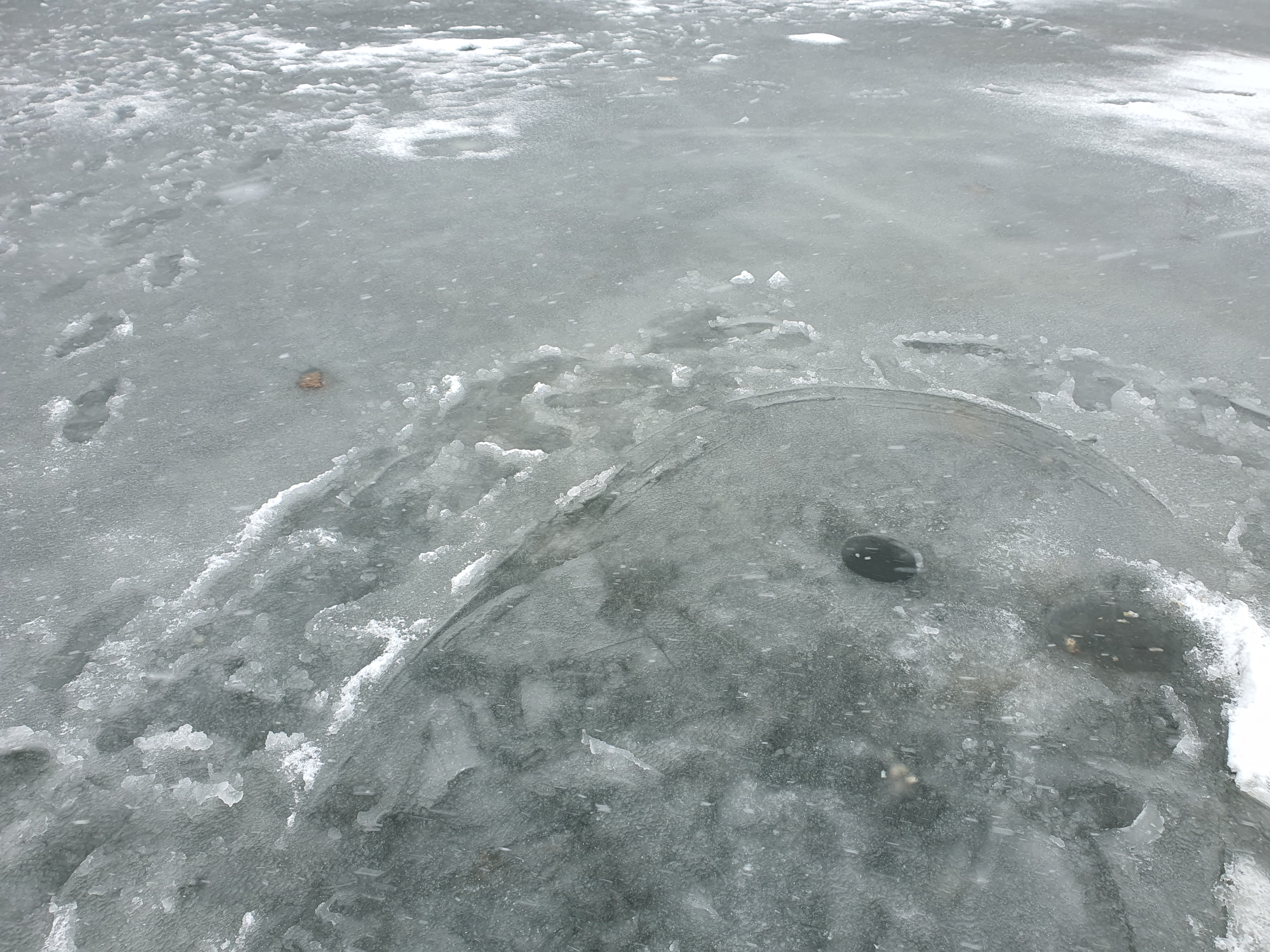 얼음두께는 약 15cm가 안 되는 정도더군요. 빙박을 하기에는 빙질 상태도 좋지 않아 조금 애매한 두께입니다.