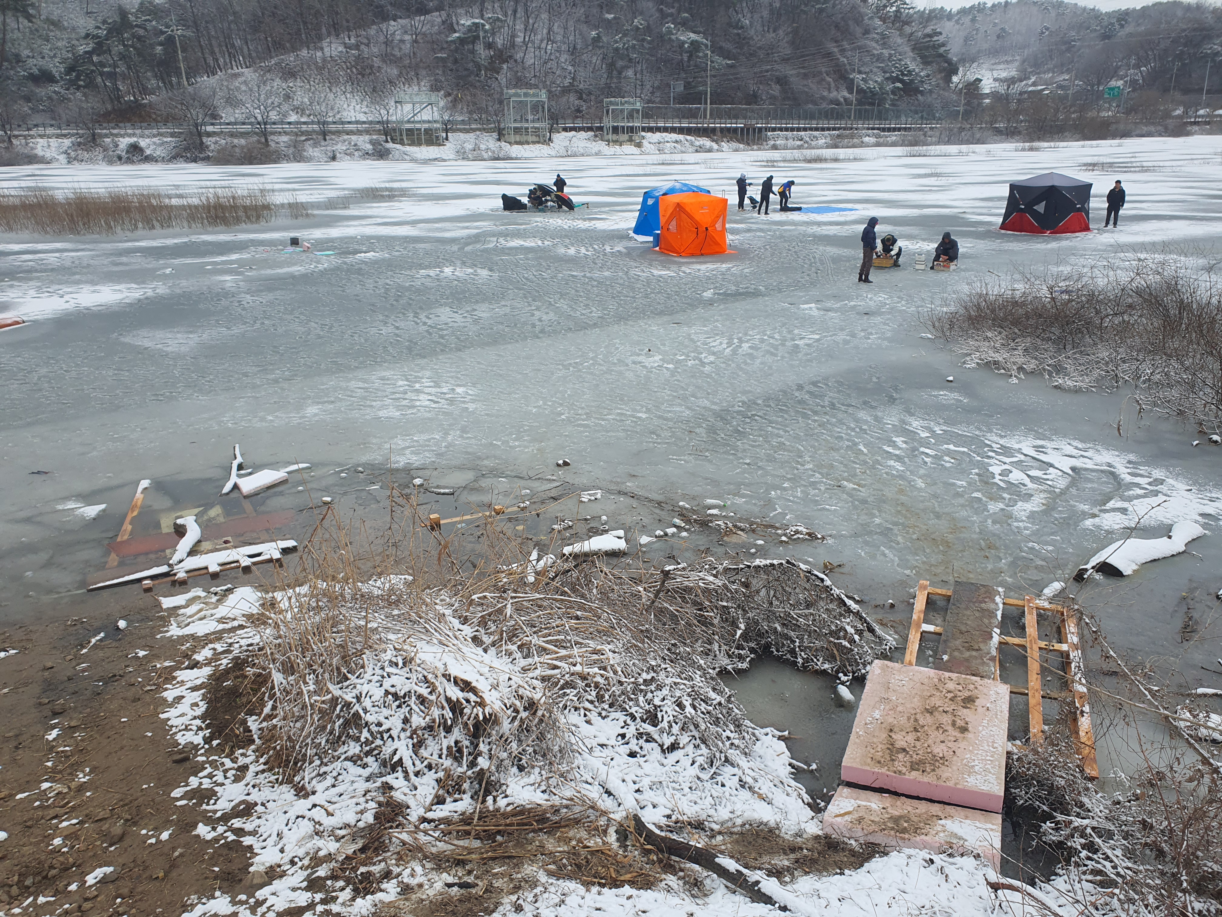 긴 설연휴지만 빙어낚시 출조를 못하다가 지방으로 내려가면서 짬낚을 위해 진천 백곡지를 다시 찾아봤습니다.