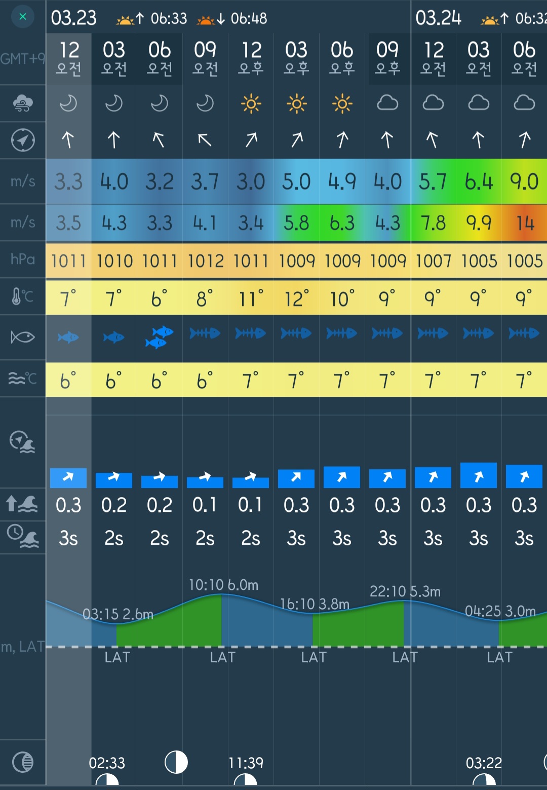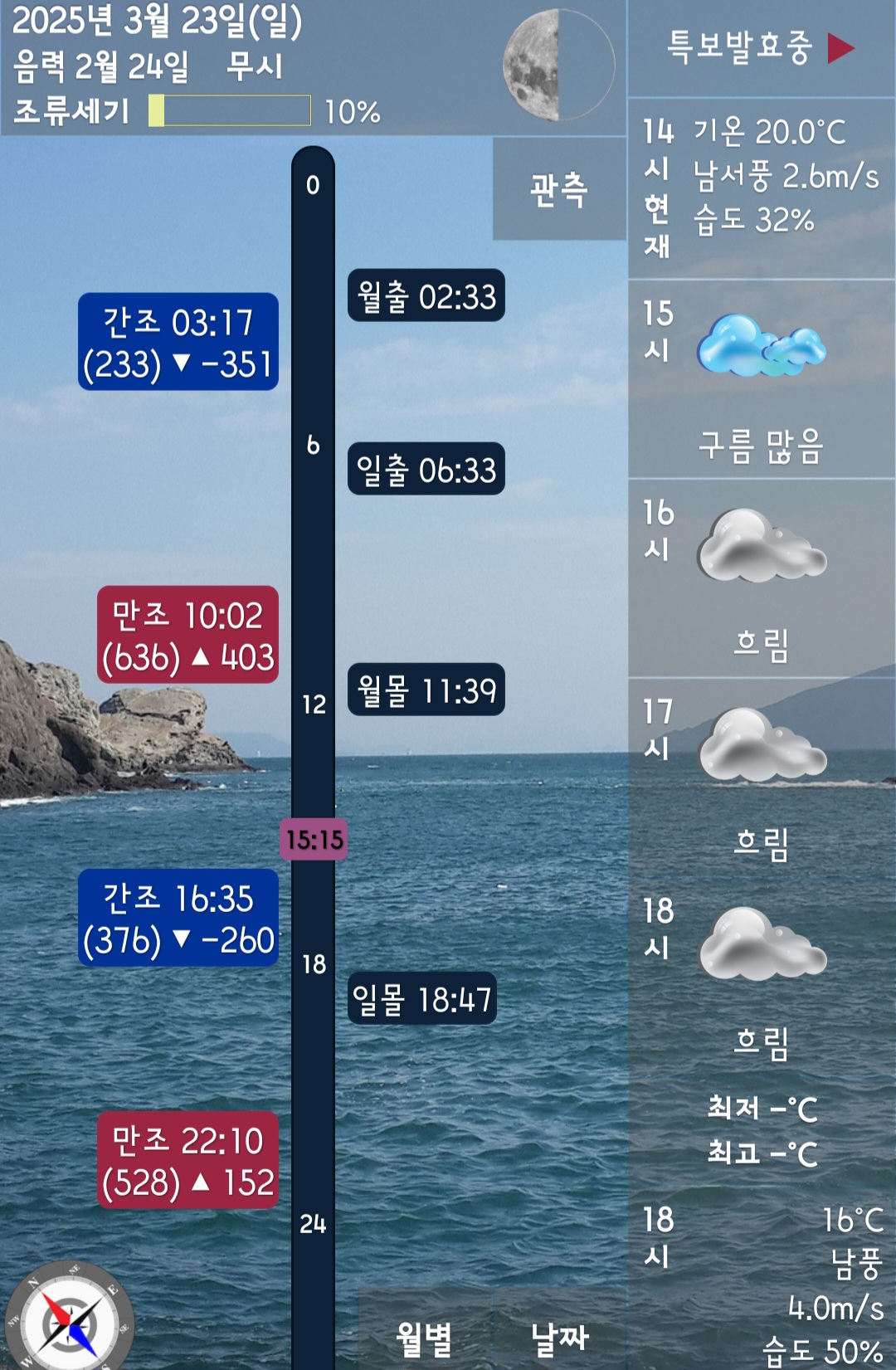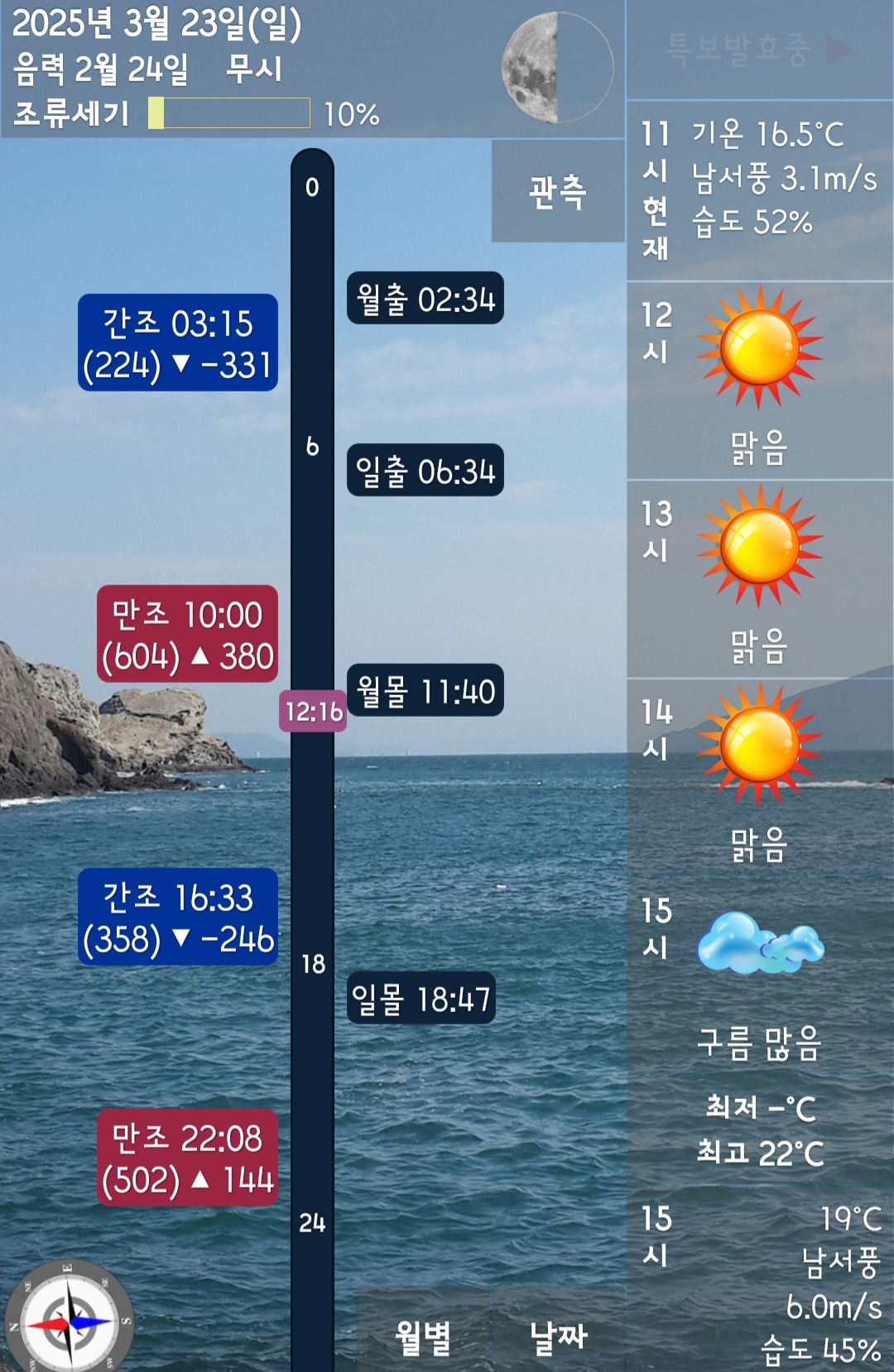 □ 바다상황 : 바람 3~6단 / 파도 없음