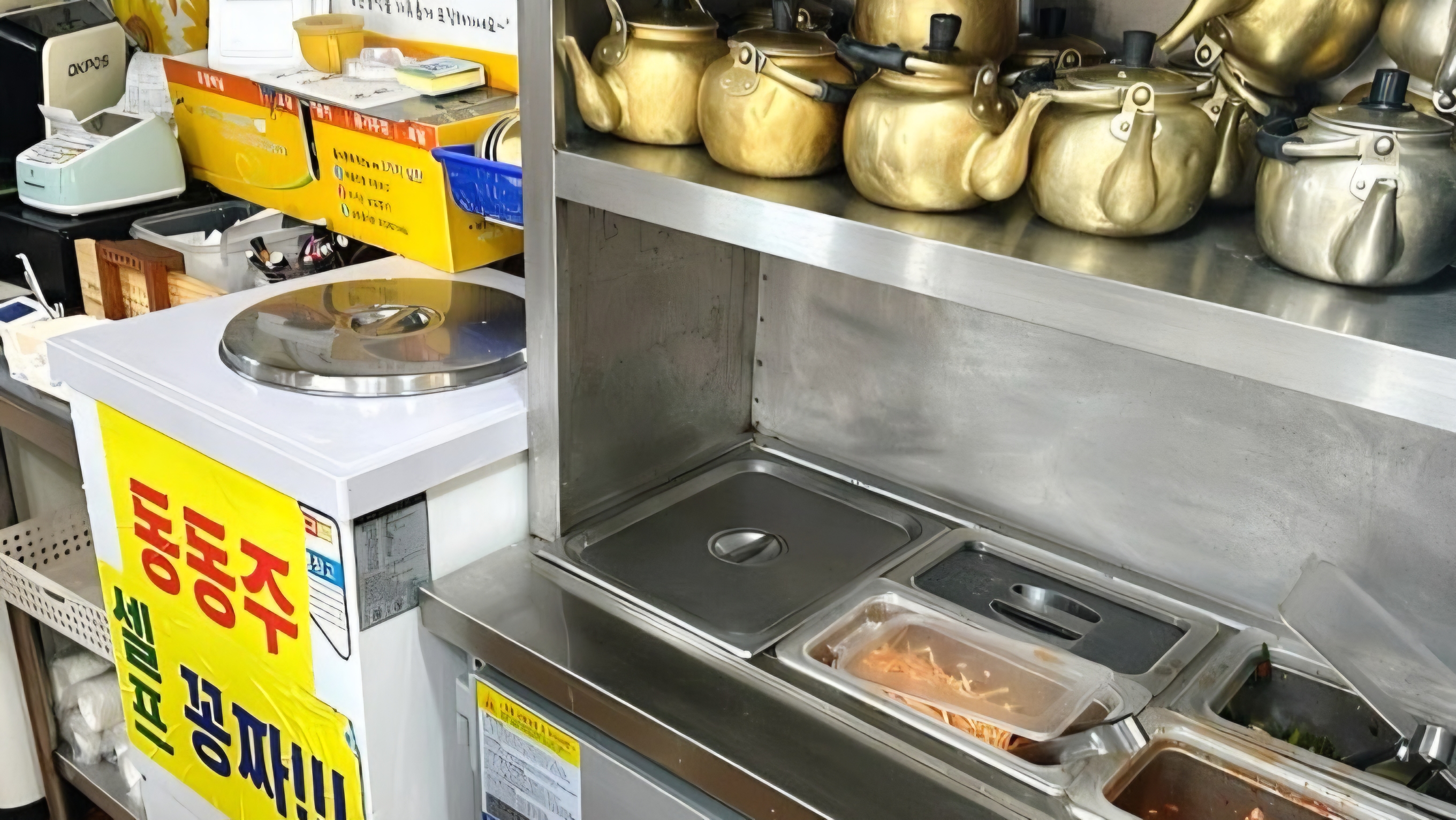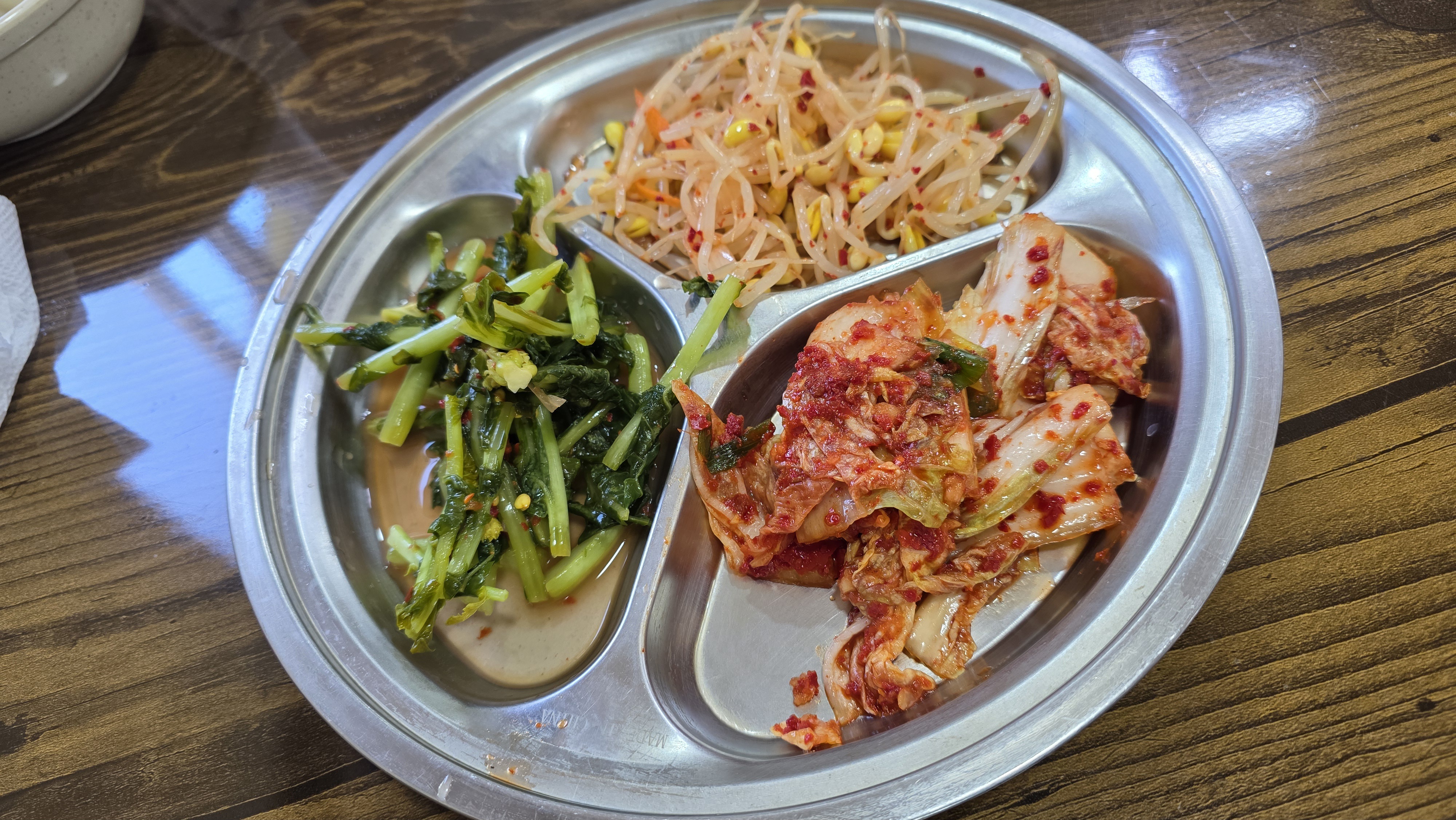 기본적인 밑반찬은 콩나물무침, 열무김치와 배추김치를 내어 줍니다. 반찬은 얼마든지 셀프로 가져다 먹으면 됩니다.