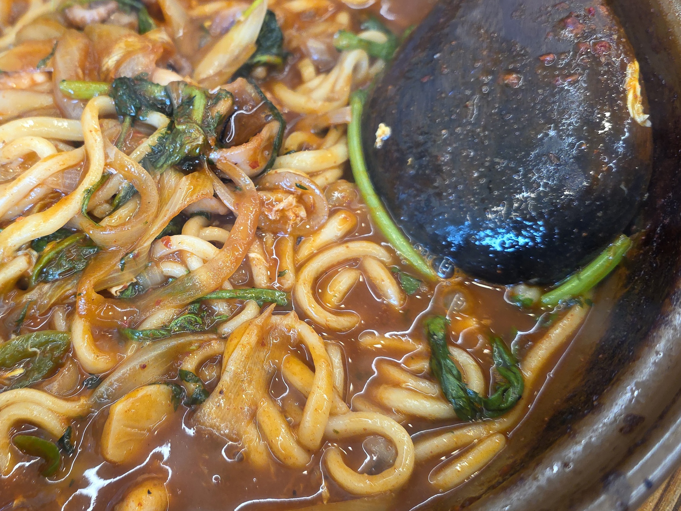 충분히 익었다고 생각했을 무렵 같이 주문한 국수사리를 주지 않아 국수사리를 재차 요청했는데 바빠서인지 한 번에 가져다 주지를 않네요. 조금씩 먹고 있다가 두 번째 요청에서야 가져다주시더군요.