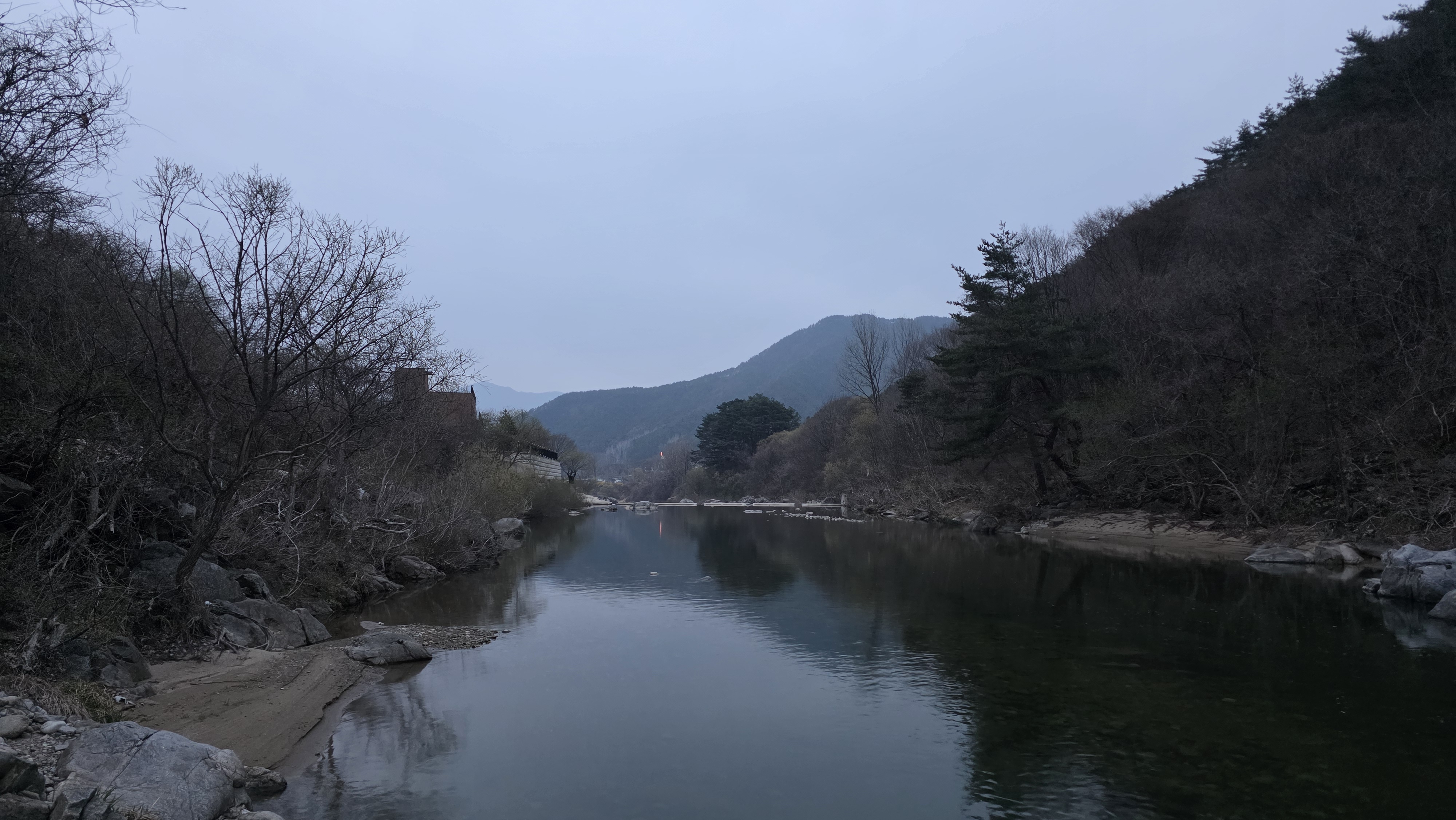 펜션 앞에 계곡에서는 생각보다 크고 많은 물이 흐르고 있더군요. 살짝 내려가 살펴봅니다.