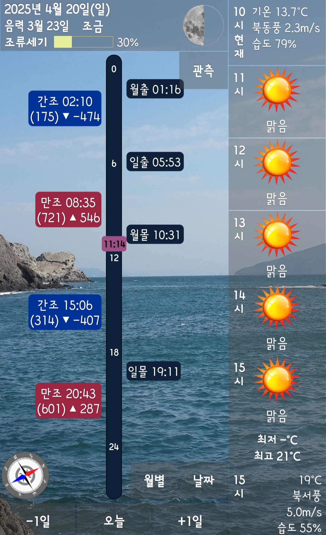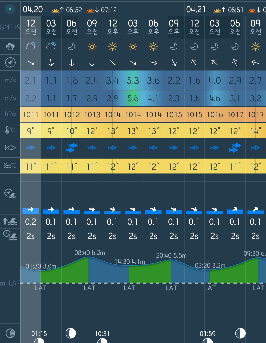 □ 바다상황 : 바람 1단이하 / 파도 없음