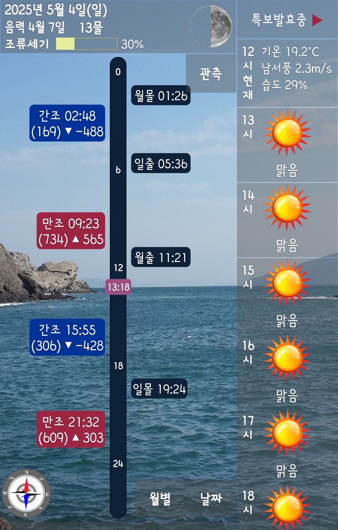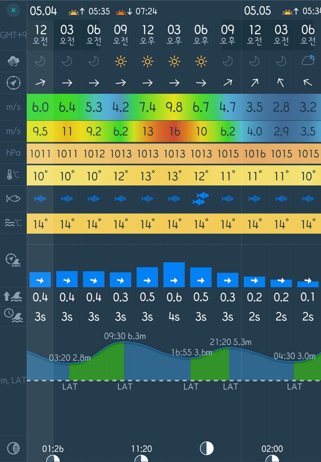 □ 바다상황 : 바람 4단이상 / 파도 조금
