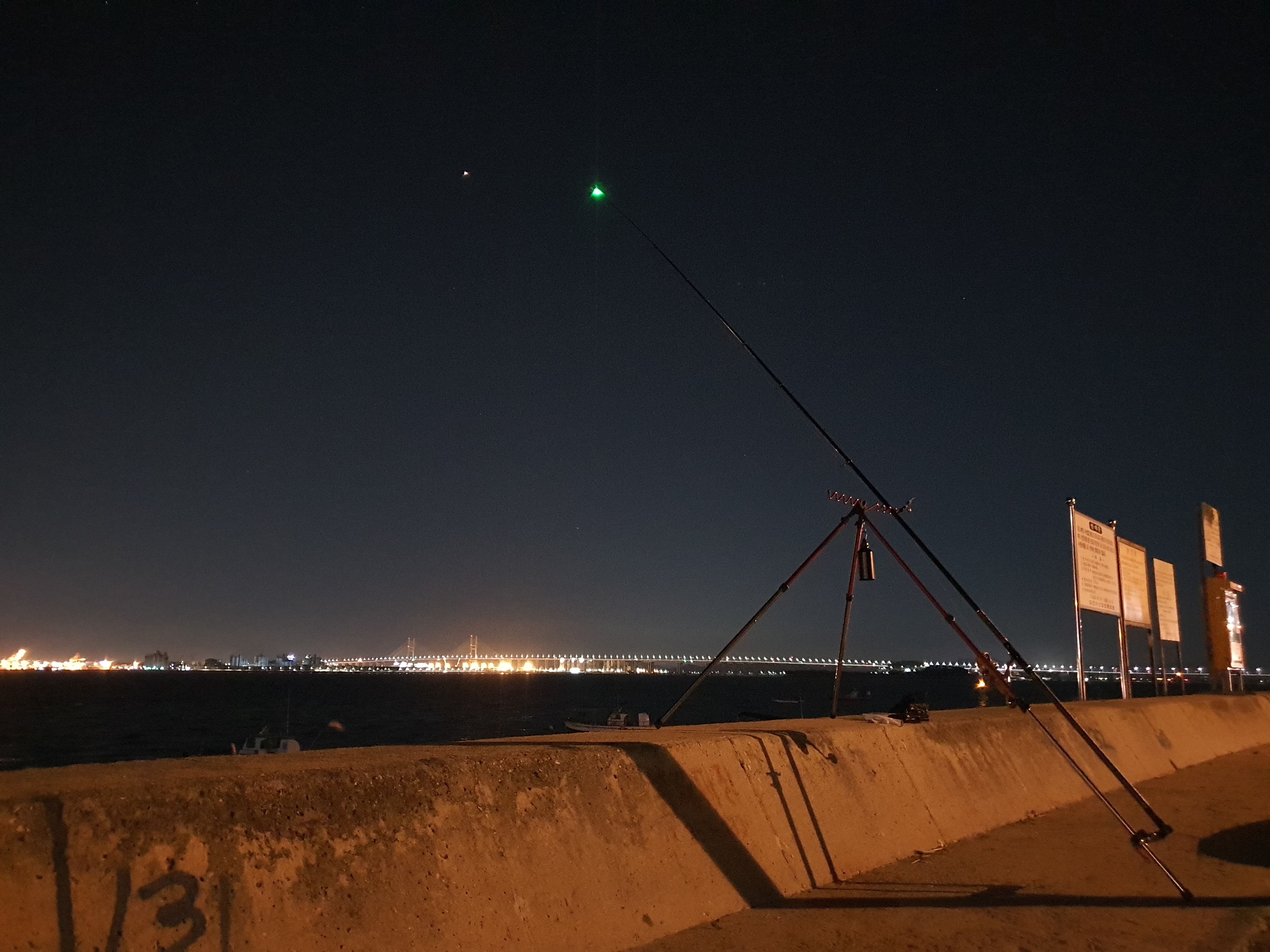 멀리 서해대교의 불빛과 밤하늘의 별빛과 초릿대의 캐미가 어우러지며 힐링을 줍니다. 역시 바다 밤낚시는 이런 맛에 하는게 아닐까 생각되네요.