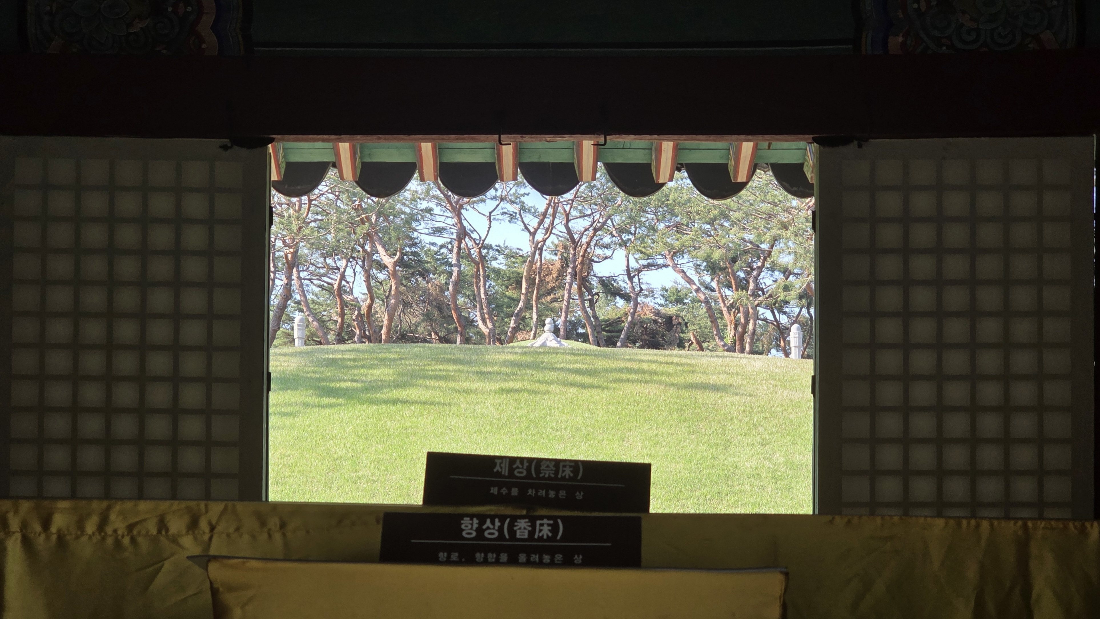 중간에 사진으로 담지 못한 사각형의 큰 연못을 지나면 신성한 지역임을 알리는 붉은 기둥 문인 홍살문 뒤편으로 세종대왕릉을 볼 수 있습니다.