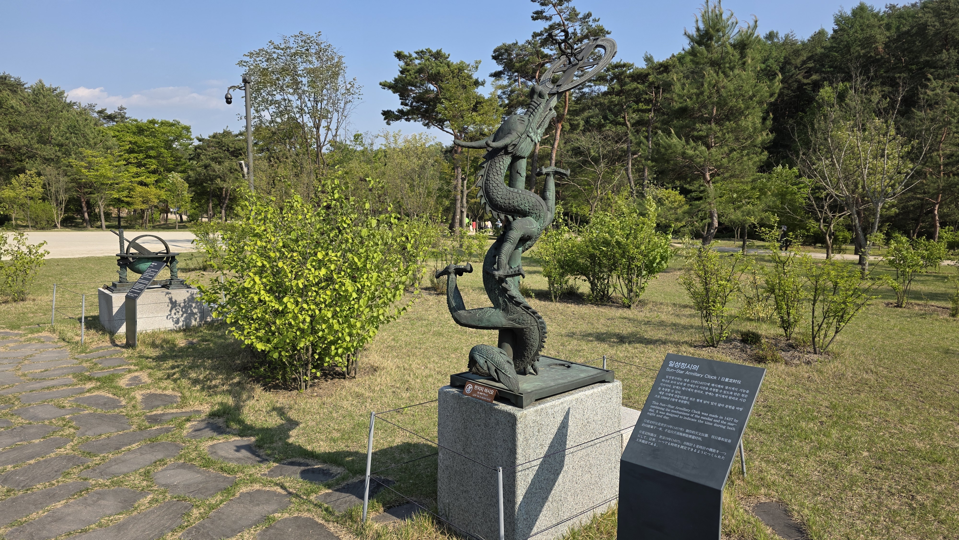 조금 걸으니 큰 광장에 세종대왕상이 보이고 그 주변으로 세종대왕 때의 각종 발명품들이 전시되어 있었습니다.