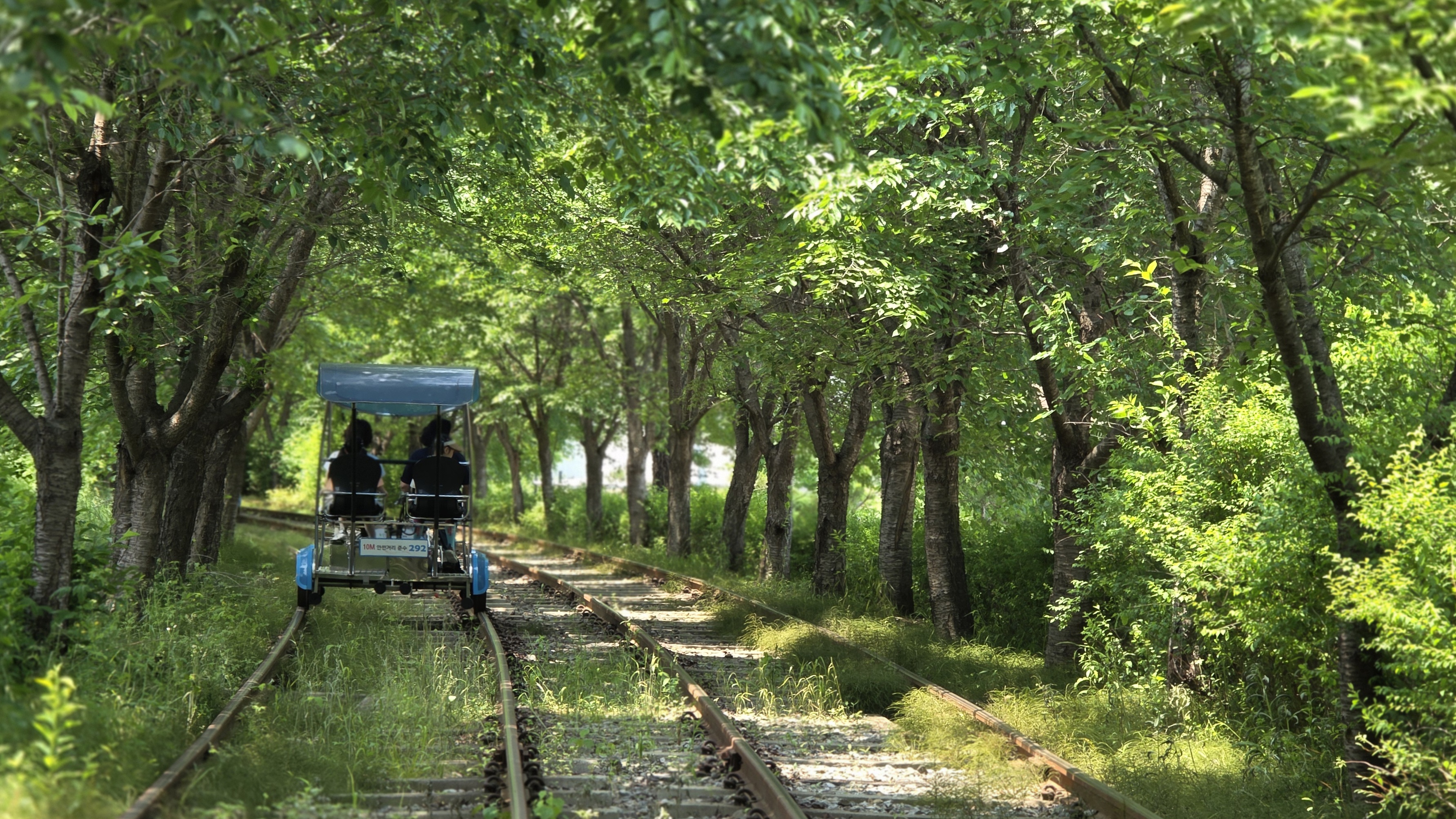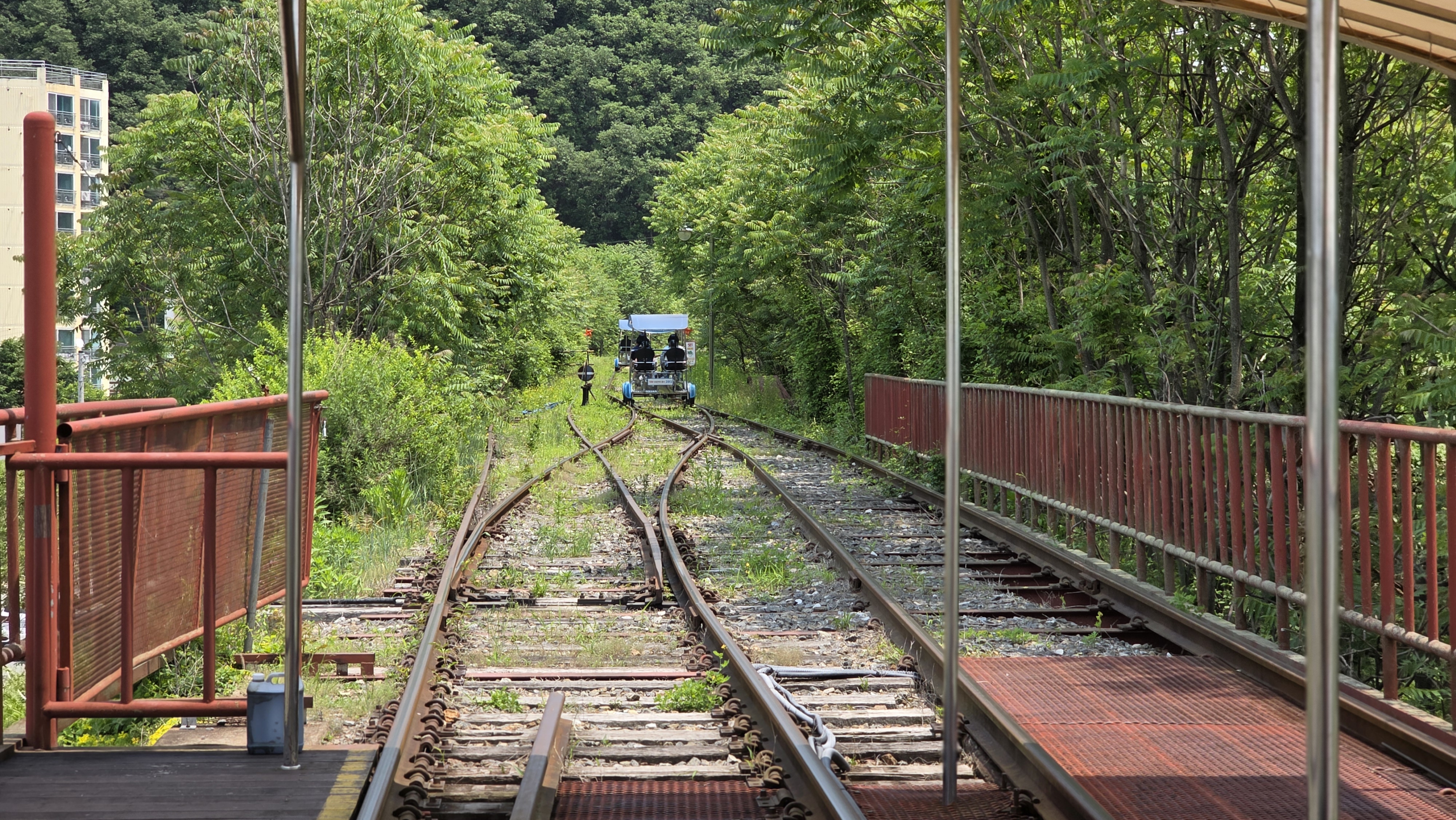 대부분의 철길이 거의 평지를 달리지만, 속도가 늦거나 간간히 오르막이 있을 때에는 페달을 밟아주어야 하더군요.