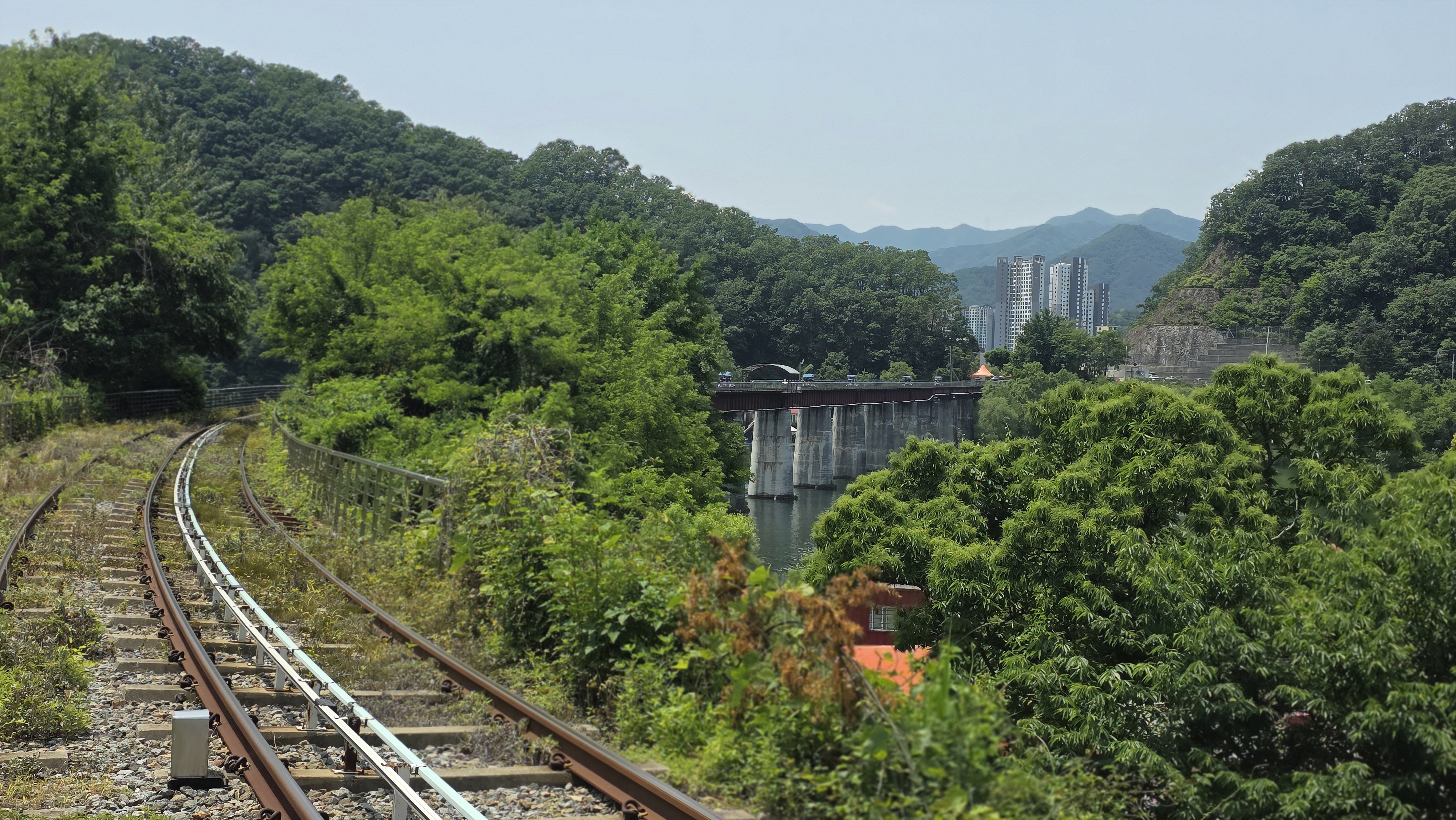 경강역으로 갈 때 철길의 바로 옆 철길인데 다른 느낌의 숲길이 보이고