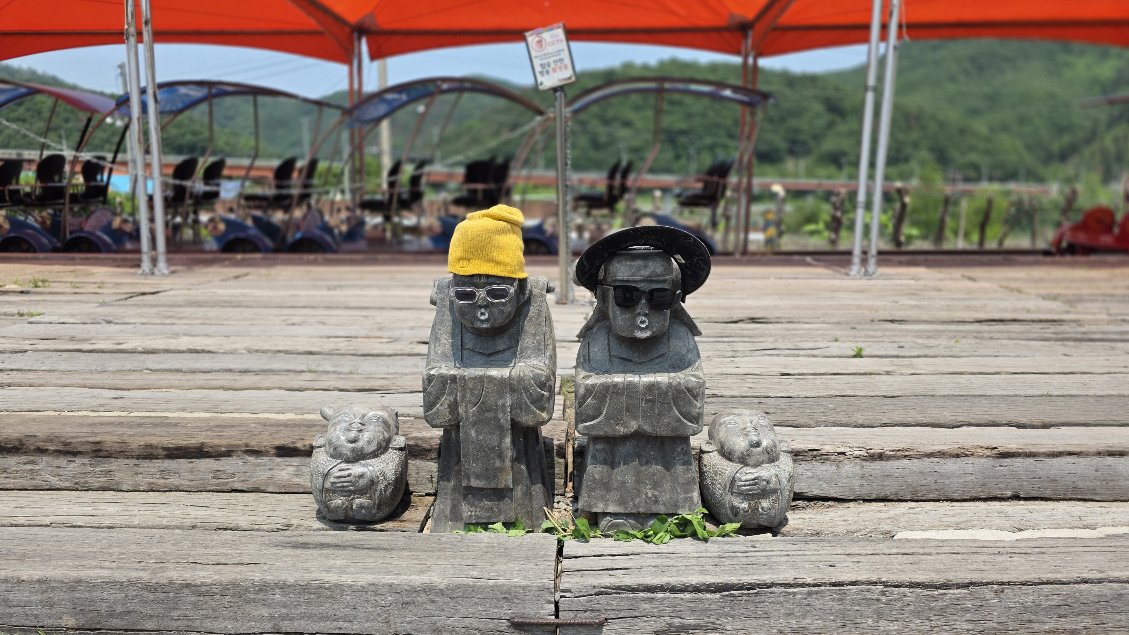 경강역 플랫폼 입구의 돌조각상이 뭔가 힙한 듯 인상적입니다.