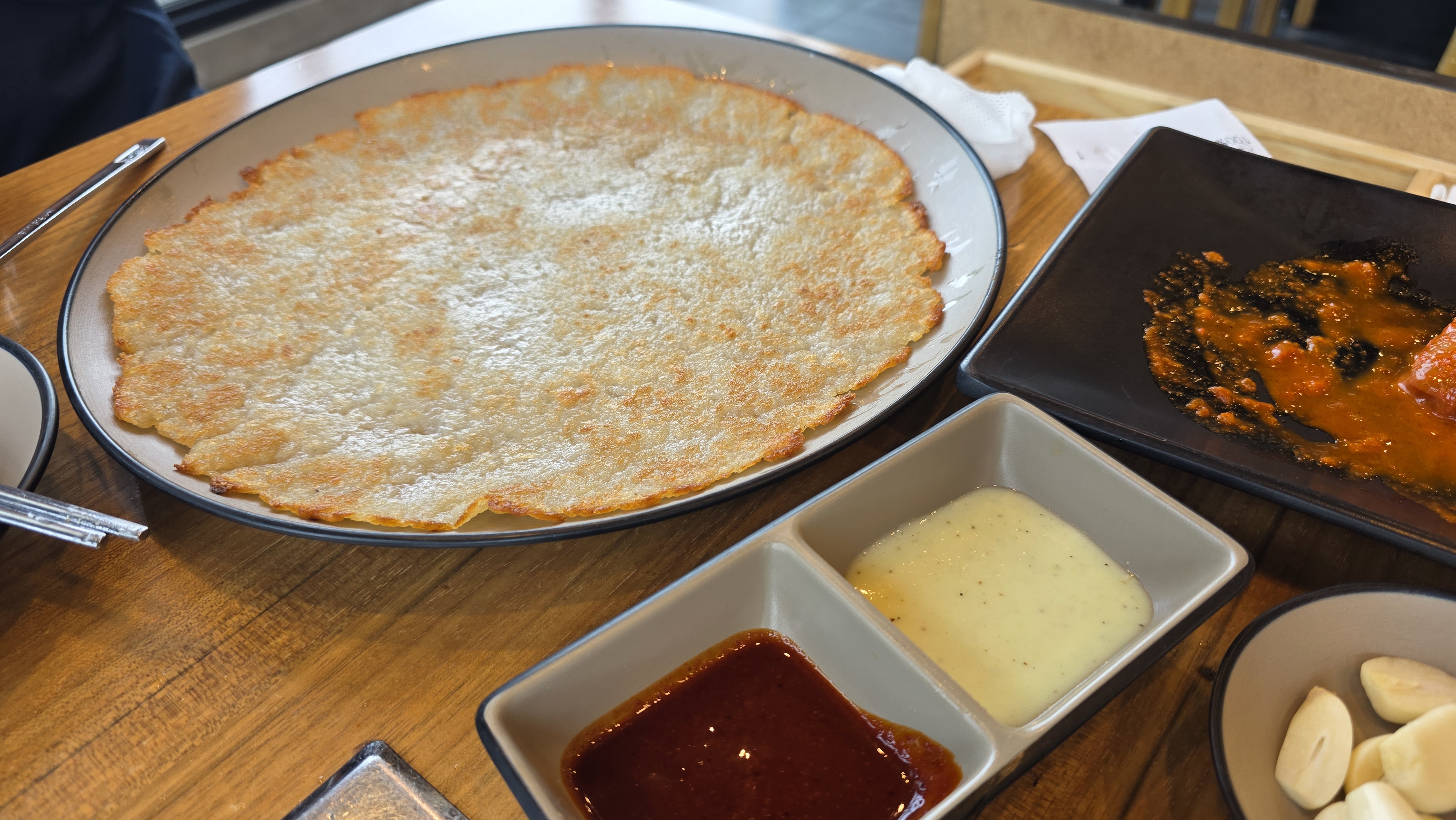 양념장에 살짝 찍어 먹는 감자전은 감자의 맛과 향이 잘 느껴지면서 닭갈비와도 특히 양념닭갈비와도 잘 어울리더군요.