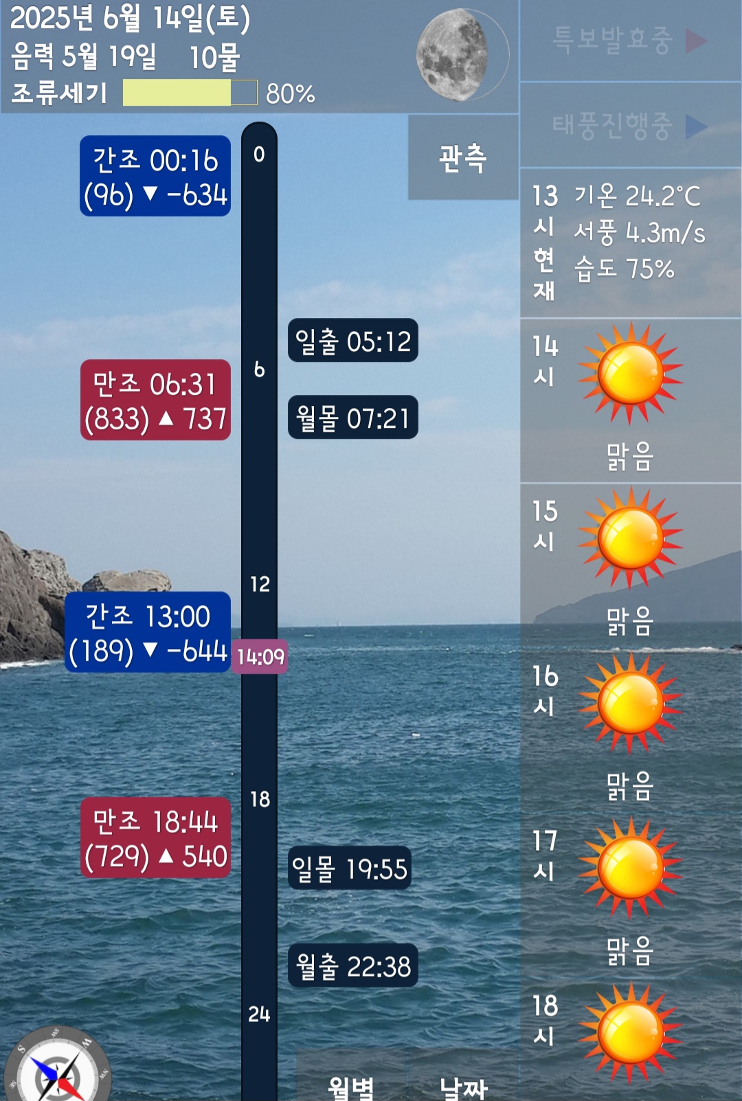 □ 바다상황 : 바람 3~5단 / 파도 약간