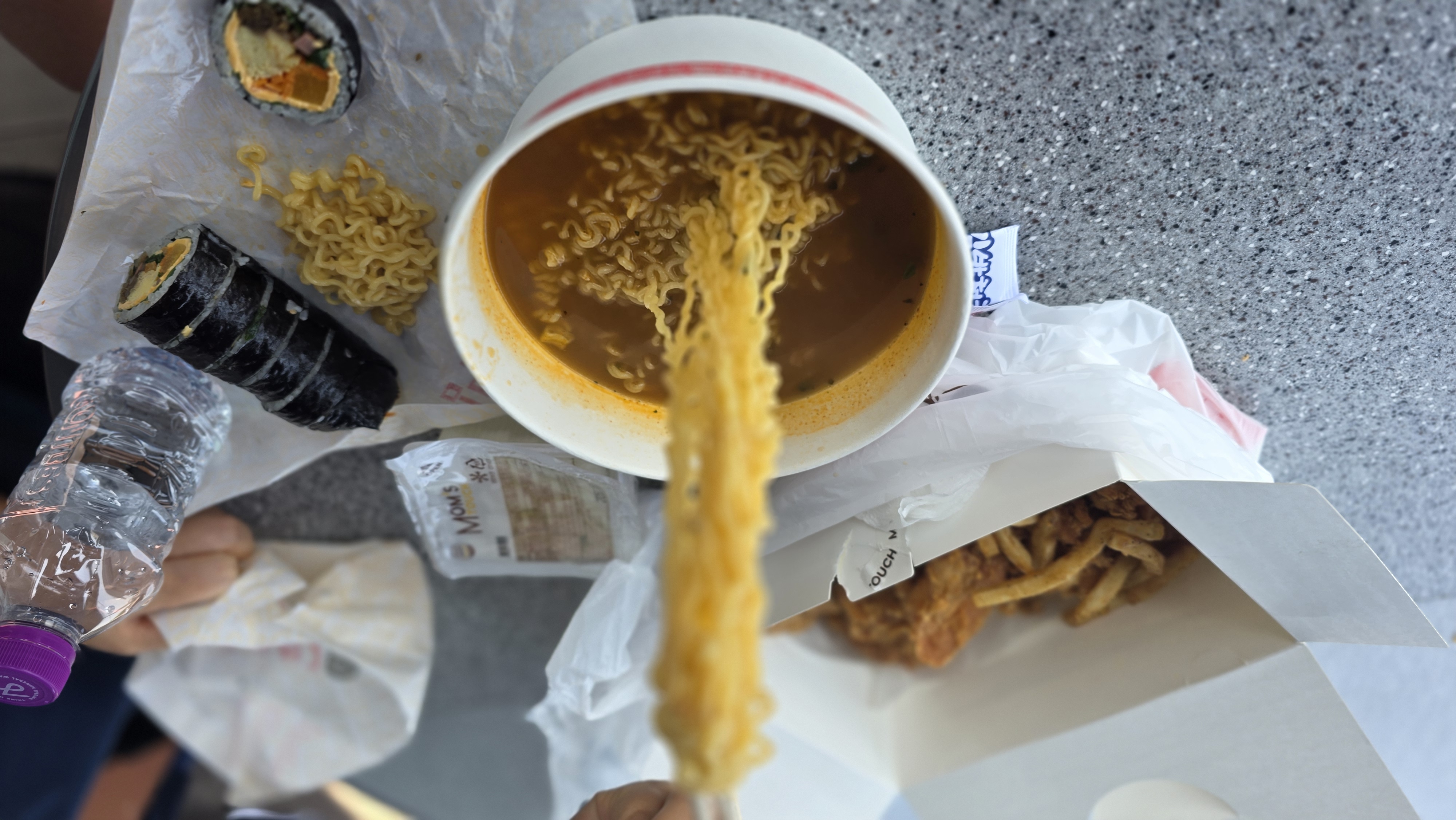 간조타이밍이라 시화나래휴게소에서 우선 식사부터 먼저 합니다. 주말이라 그런지 사람들이 꽤 많더군요. 미리 사온 치킨과 김밥에 즉석라면을 더해서 맛나게 먹었네요.
