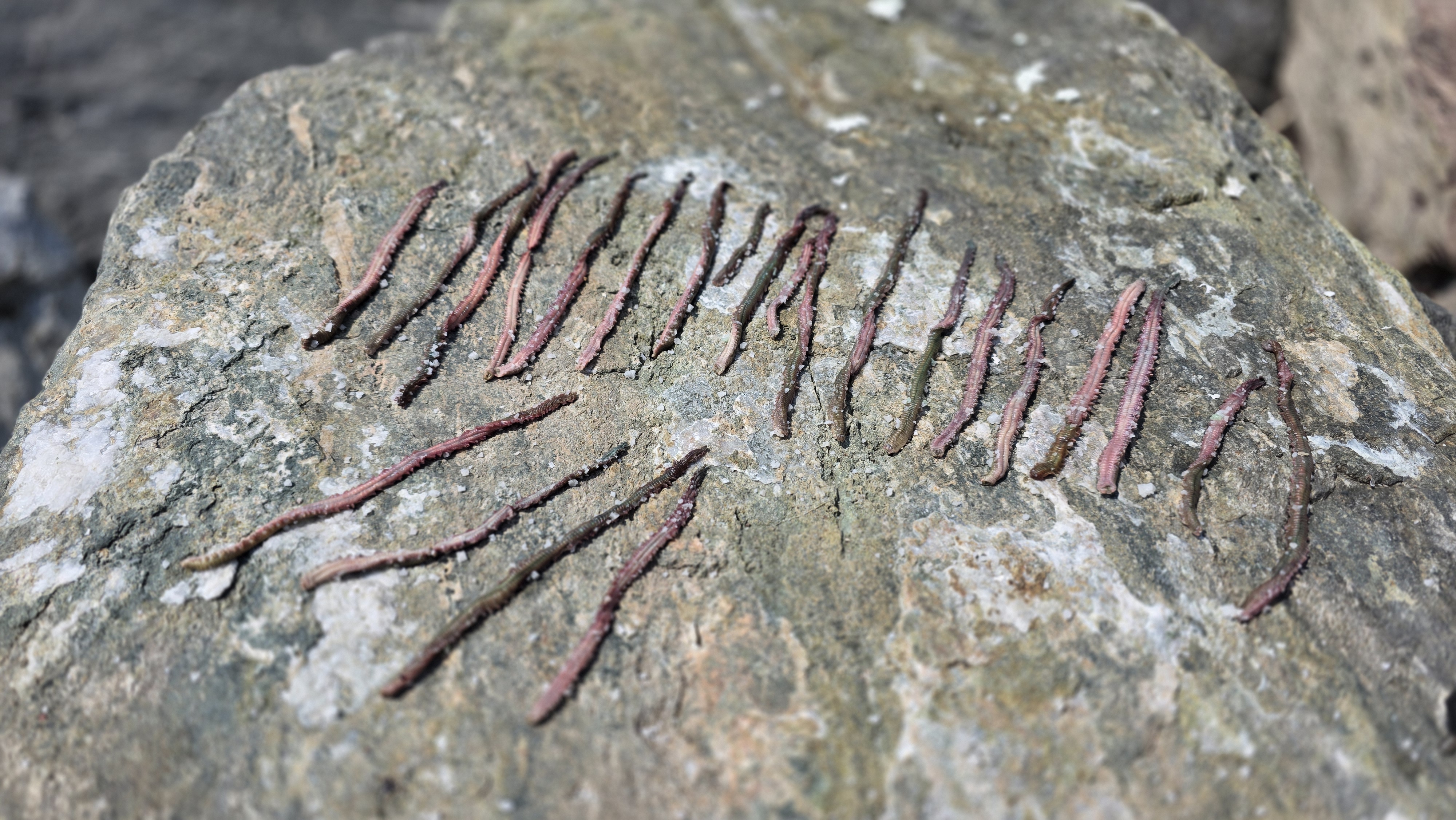 회수를 하면 미역과 함께 미끼도 거의 그대로 올라오더군요. 새로 산 청개비는 염장을 합니다.
