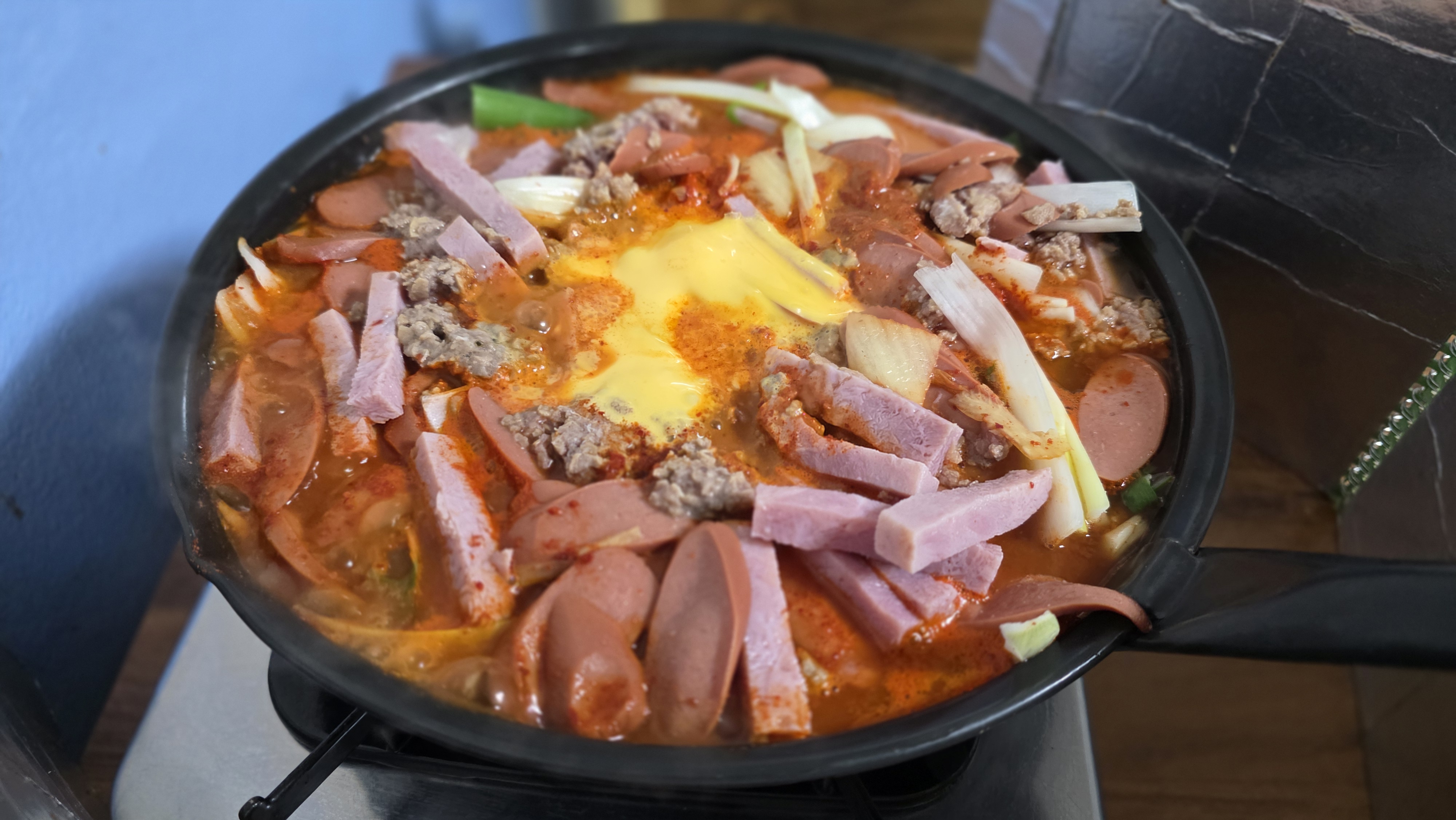 얼큰하면서도 시원한 국물맛이 일품이고, 소시지와 햄과 야채들이 맛나더군요. 매운맛은 뒤늦게 올라오더라구요.
