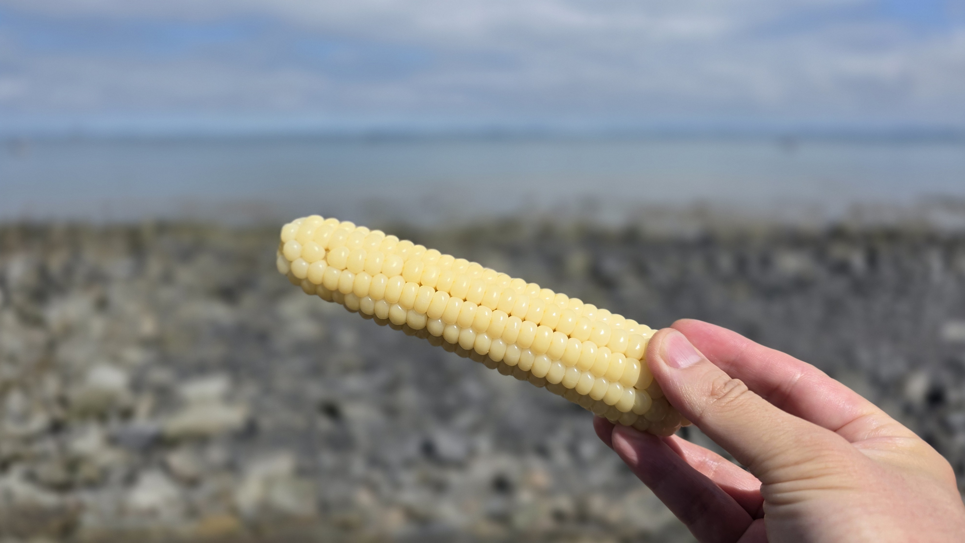 들물 타임으로 바뀌면서 잠시 휴식겸 점심을 컵라면과 찐옥수수로 대신합니다.
