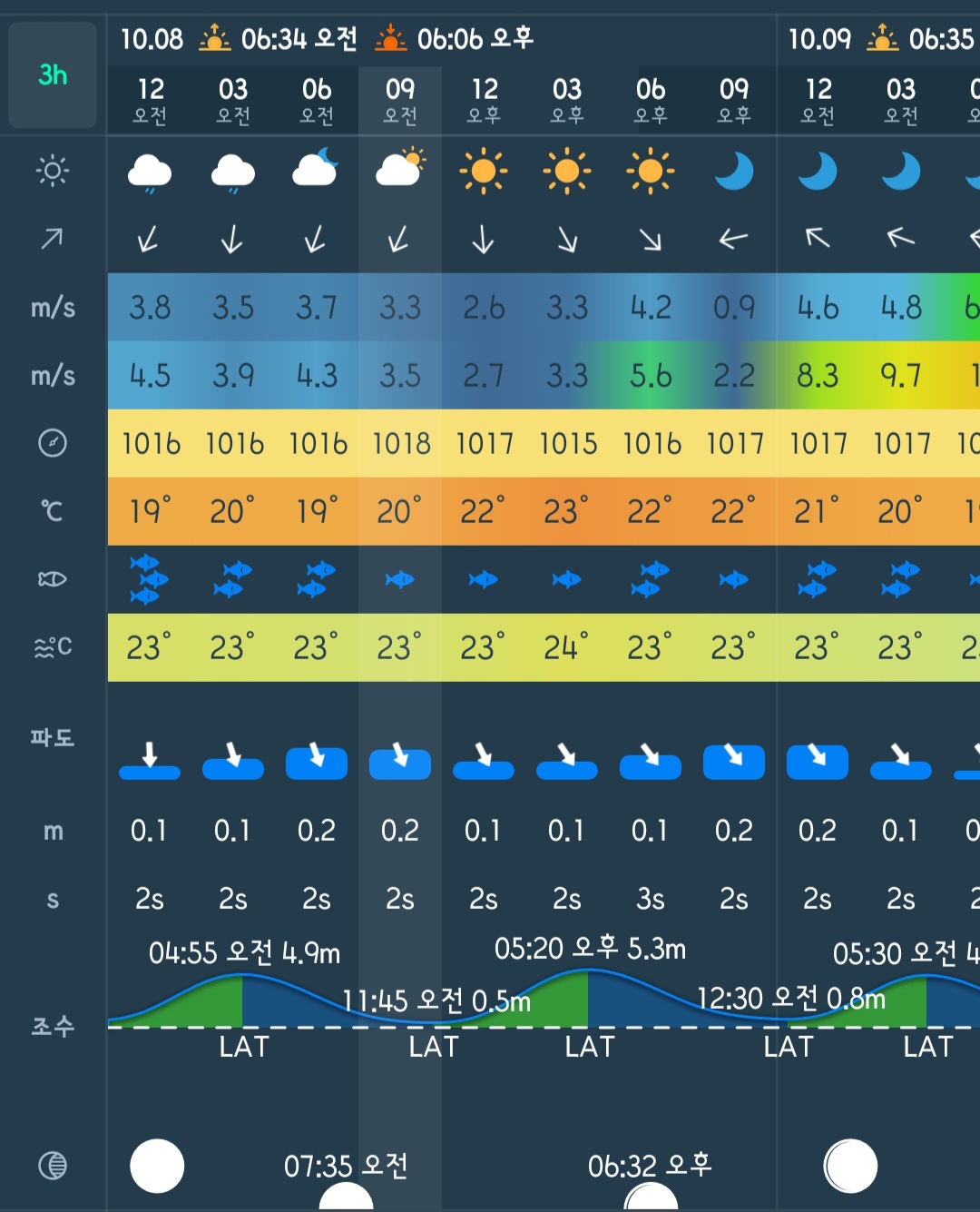 □ 바다상황 : 바람 1~3단 / 파도없음