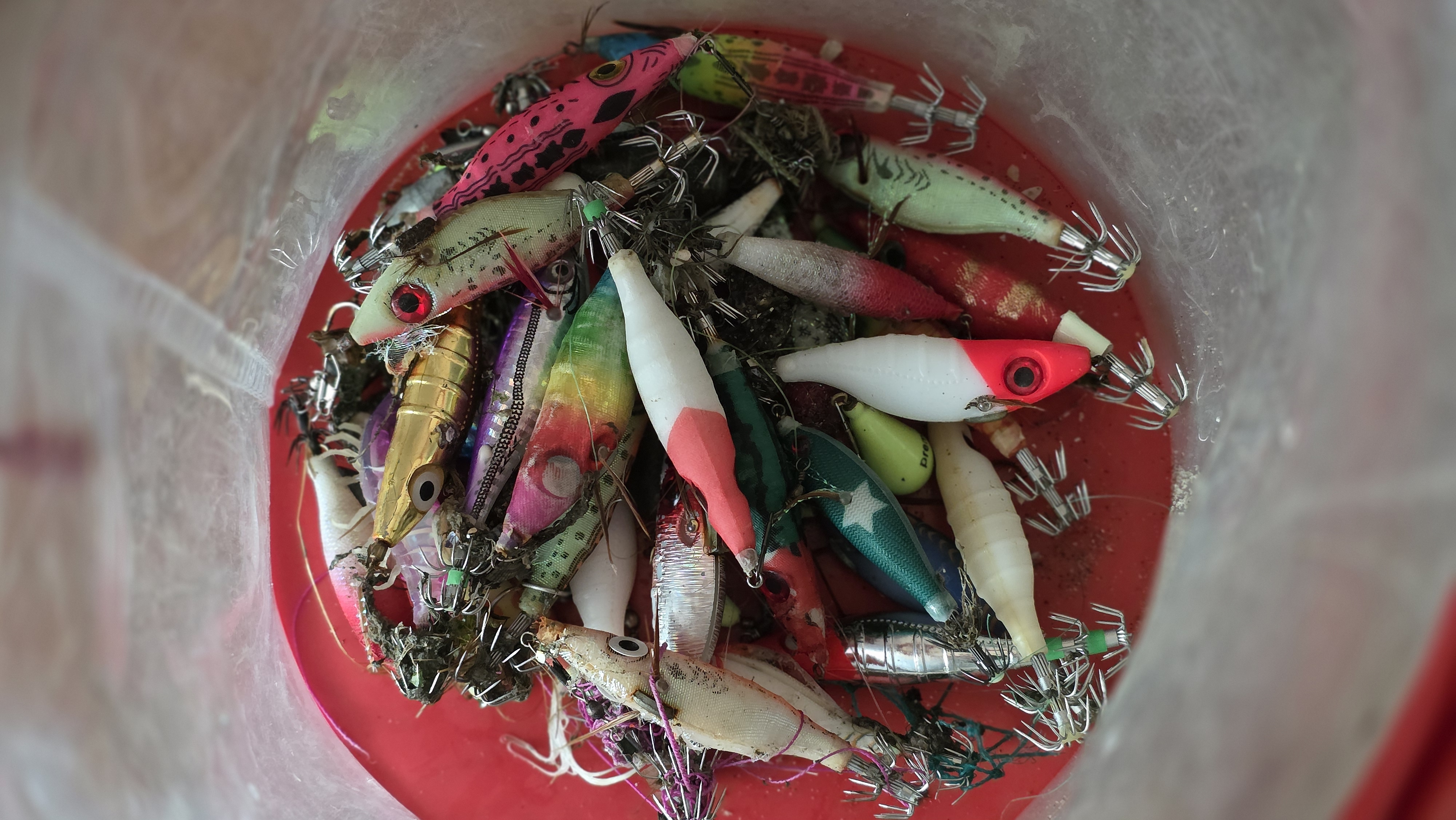 생물 대신 에기와 봉돌을 회수해 환경보호에 이바지합니다.