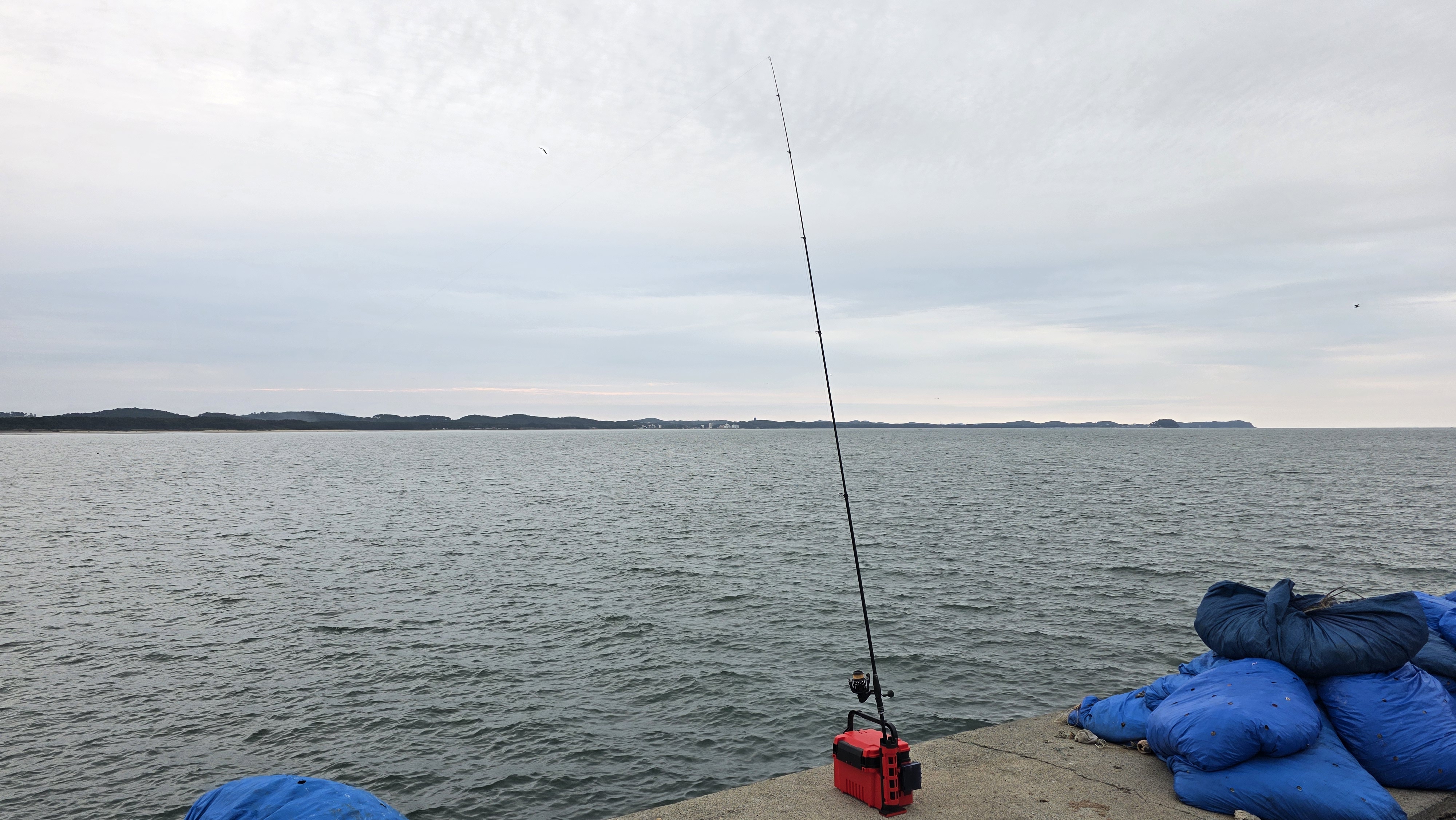 다시 몽산포항으로 돌아왔는데 여전히 바람이 좀 있더군요. 입질이 전혀 없어서 테트라 외항 쪽으로도 던져봤지만 피차일반이더군요.