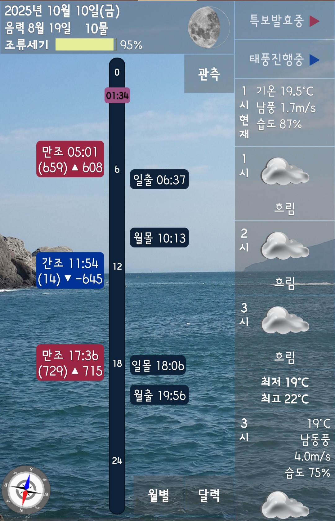 □ 바다상황 : 바람 4~6단 / 파도약간