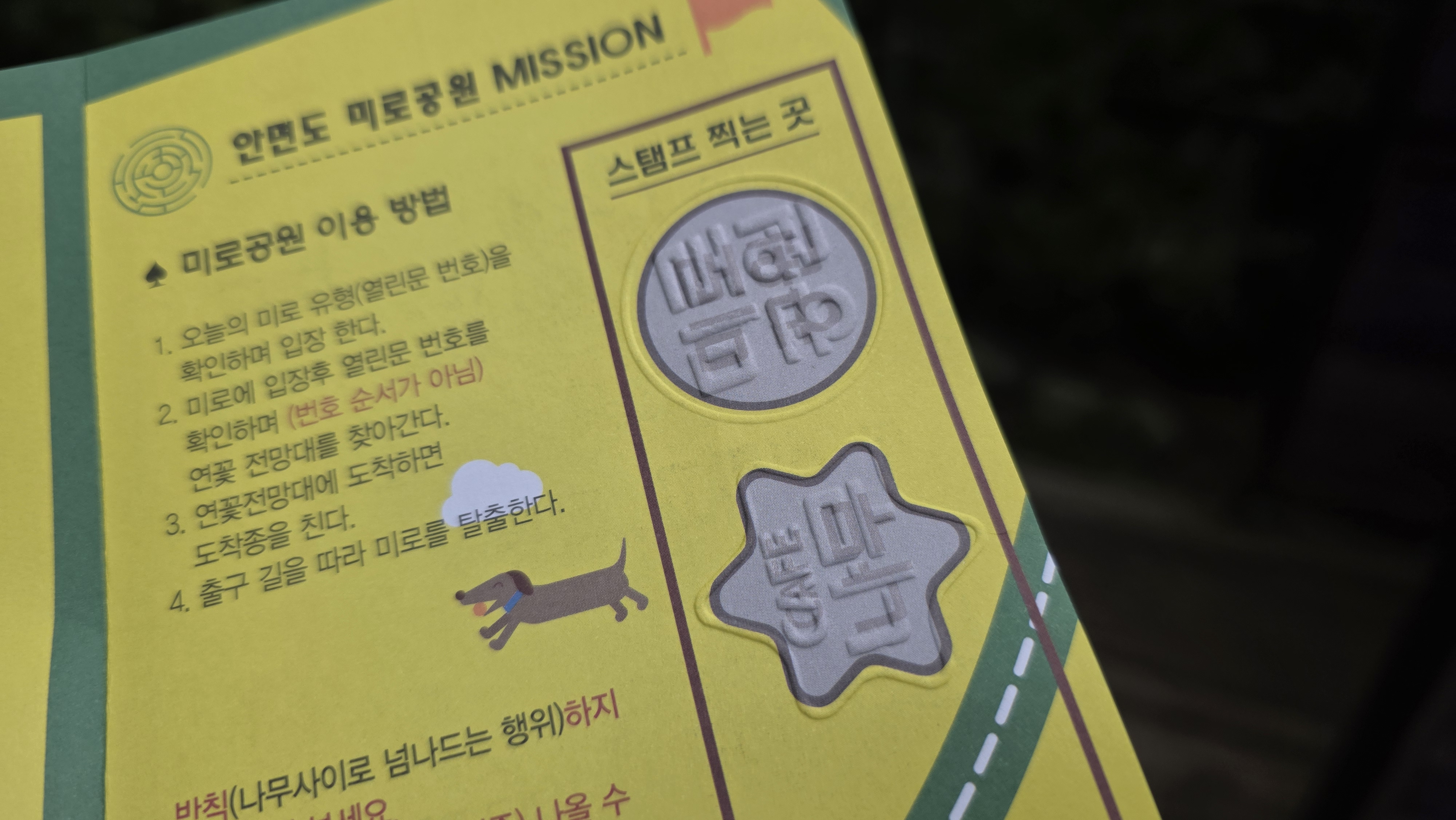 그전에 가능한 미로공원 지도와 스탬프 미션이 있는 팜플렛을 챙기세요. 자칫 미로공원에서 길을 잃어 못 나올 수 있어요.