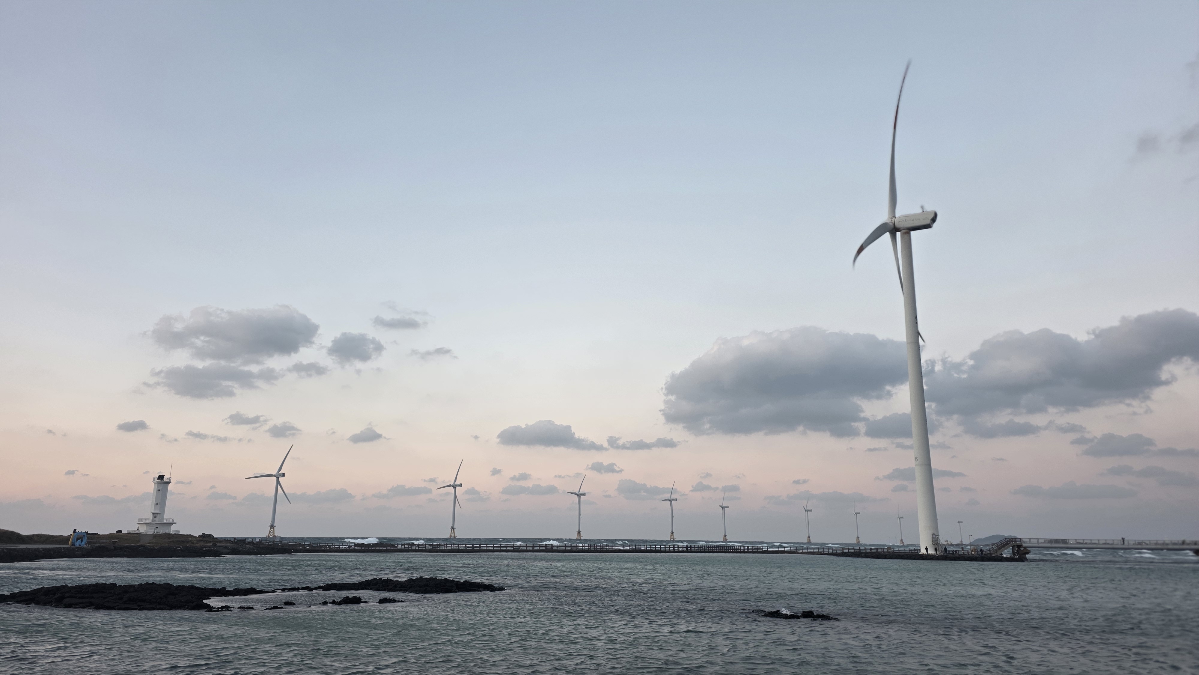 거대한 풍력발전기와 해변을 연결한 다리를 통해 산책을 할 수 있는 곳인데요. 해 질 녘 부는 바람이 너무 강풍이라 짧은 산책만 하고 저녁식사를 하러 갑니다.