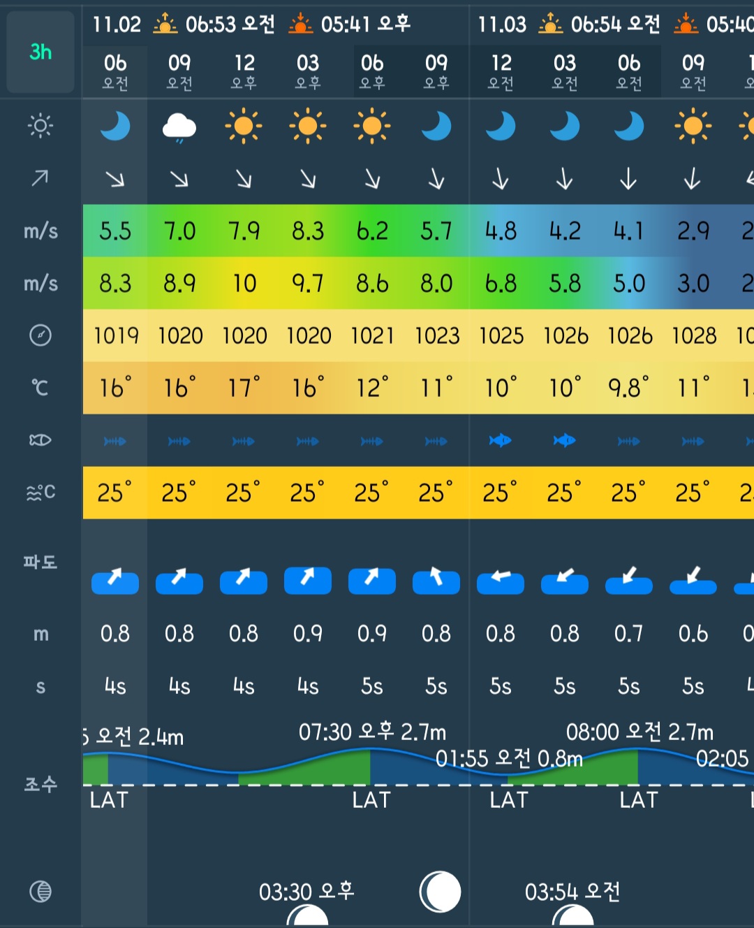 □ 바다상황 : 바람 3~5단 / 파도약간