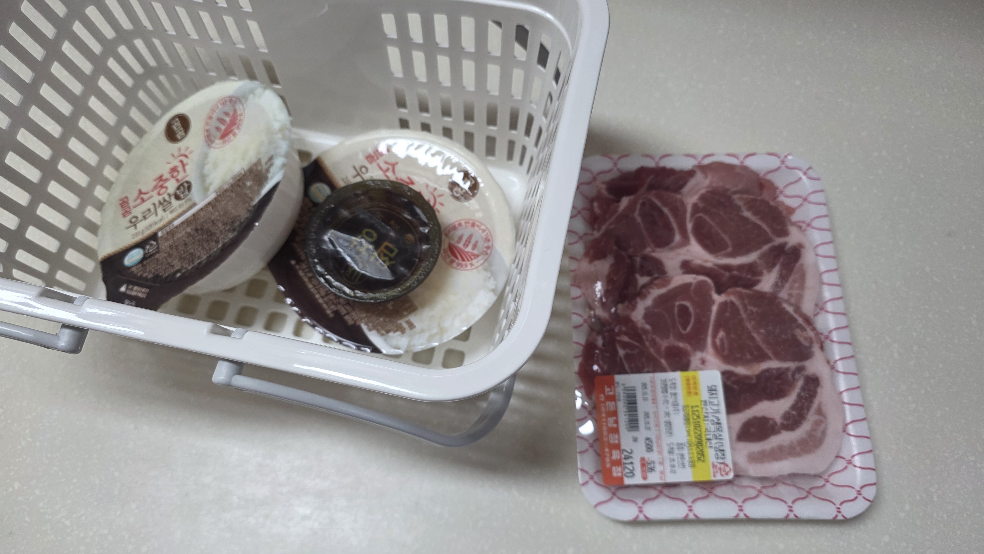 팬션 예약 이벤트로 1만원의 행복이벤트를 하고 있던데요. 2인기준 2만원 바베큐 준비비용에 1만원을 더하면 햇반 2개, 쌈장과 돼지목살 500g정도를 주시더라구요.