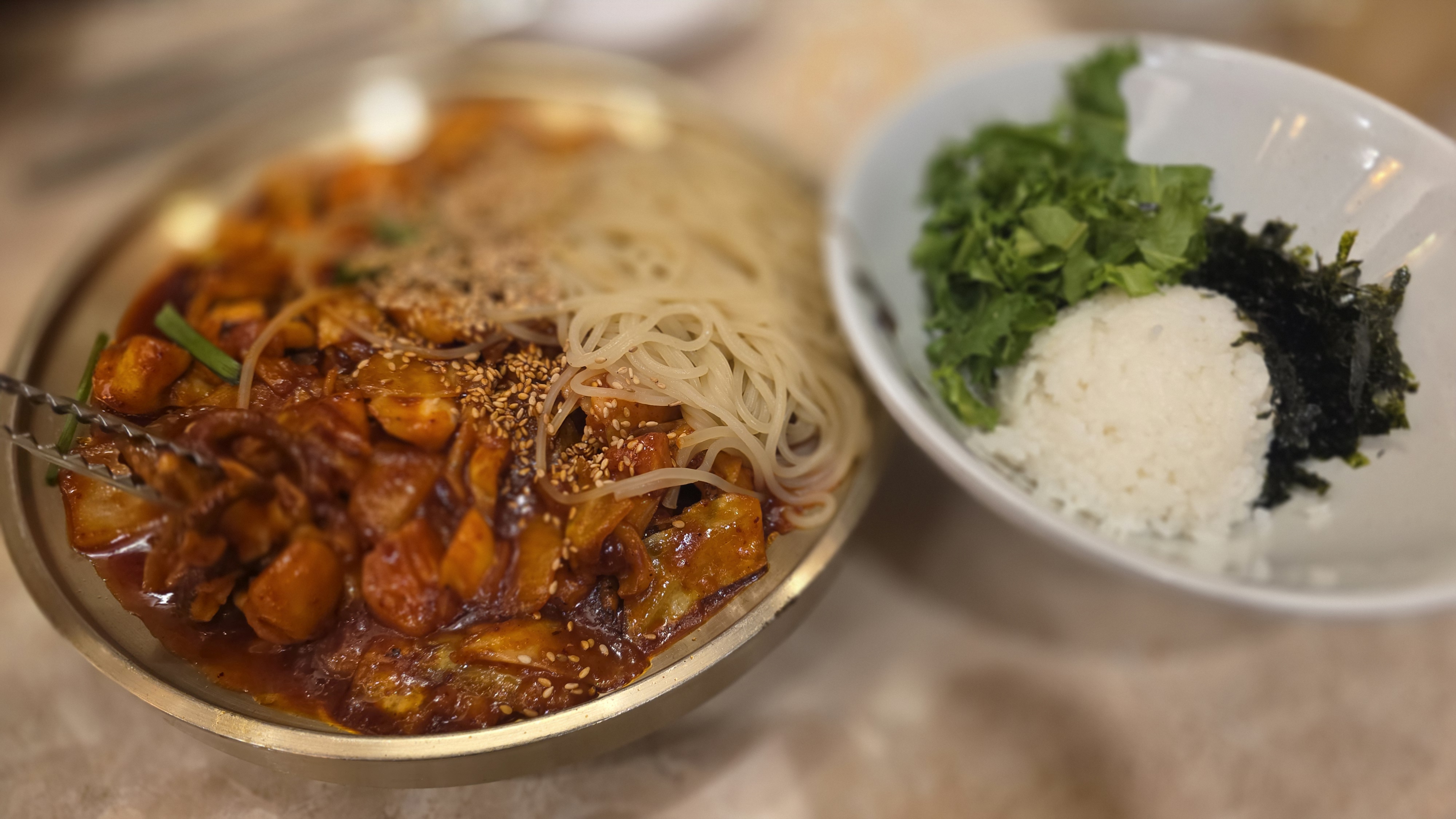 쭈꾸미뽁음의 맵기 강도 조절이 있었는지 기억이 안나네요. 불향과 매콤함이 섞여서 매콤함이 더 오래 가는 맛이었습니다.